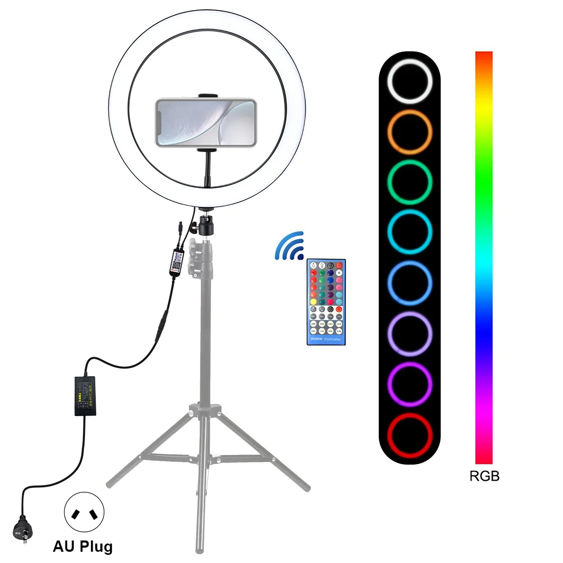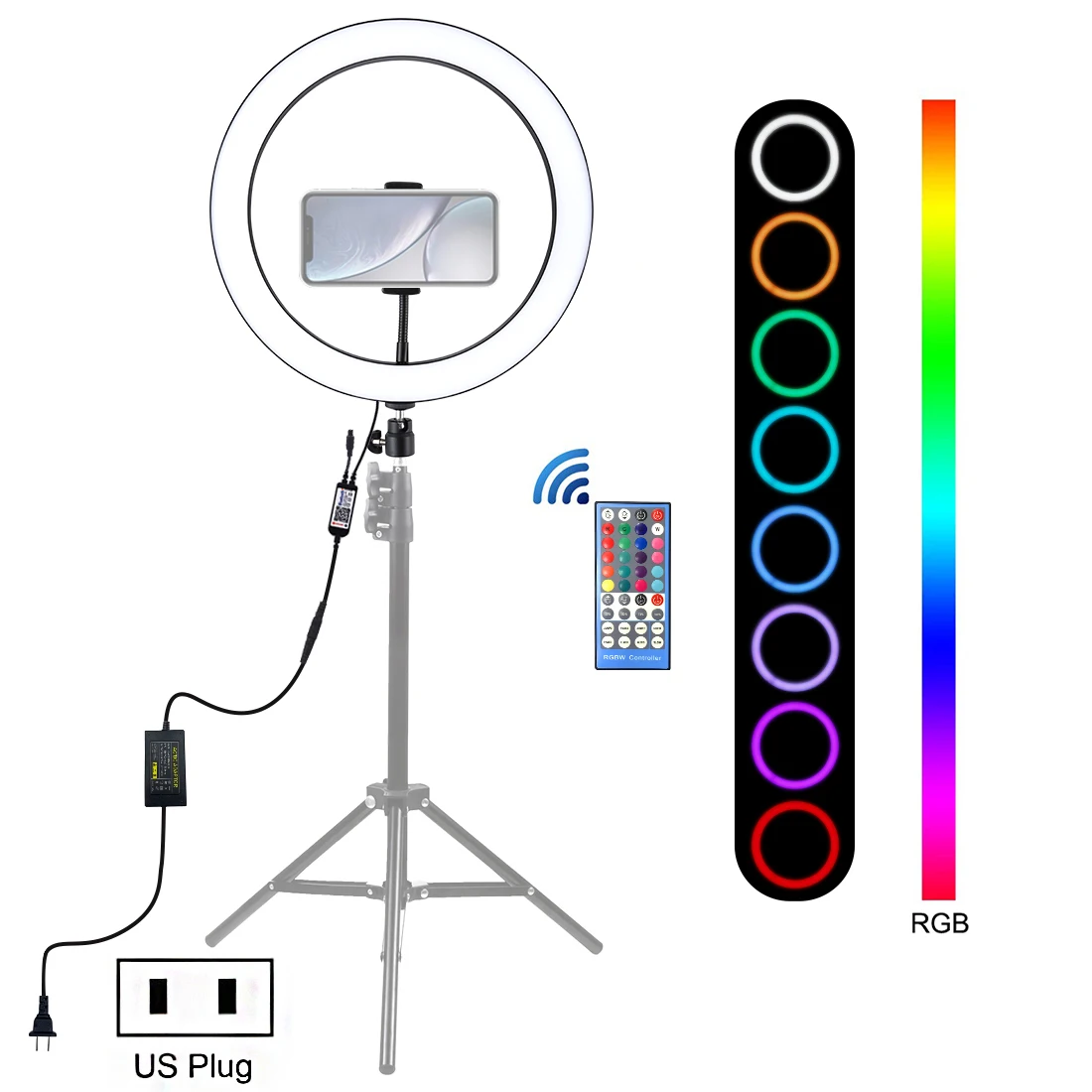 4. Режим цветового освещения RGB Регулируемая яркость на ваш выбор, вы можете настроить цвет и яркость очень легко, идеальная яркость может быть достигнута без установки дополнительных красочных фильтров. Мягкий естественный светильник разных цветов освещает вашу красоту в разных случаях.