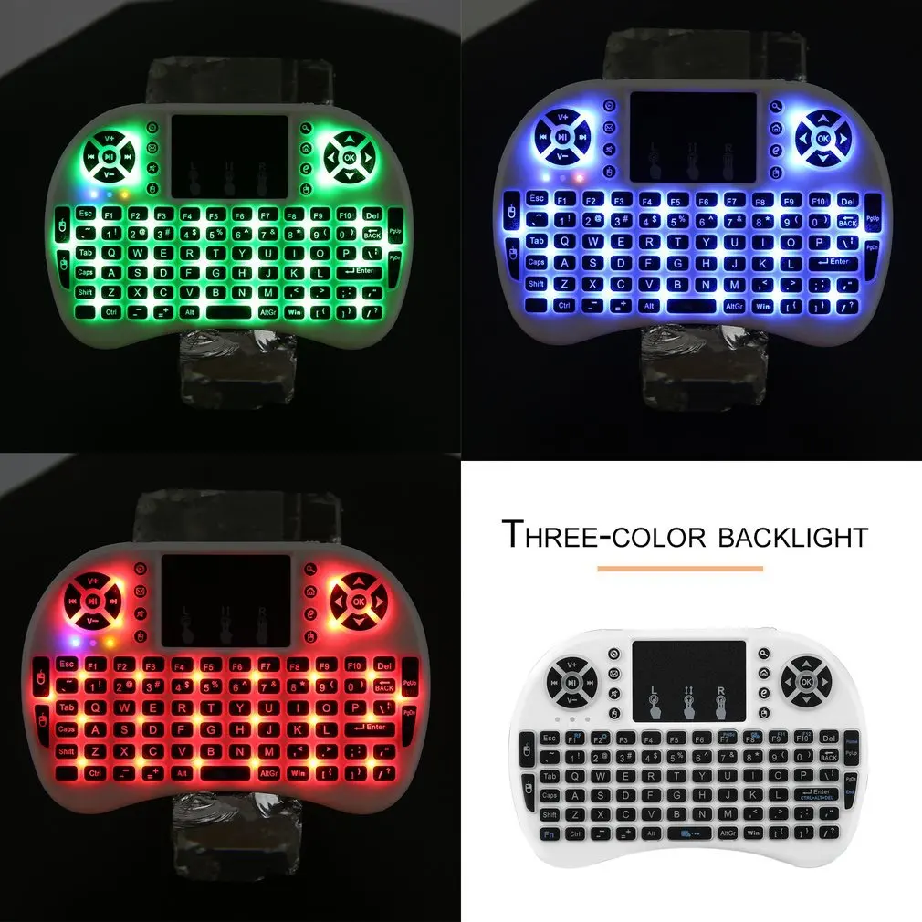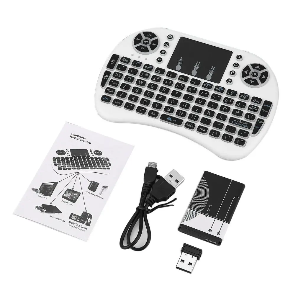 Особенности: 92-клавишная клавиатура с кнопками управления мультимедиа и кнопками управления компьютерными играми (без Подсветка) Высокопродвинутая беспроводная технология RF 2,4G, обеспечивающая защиту от помех и надежное соединение, радиус: 10 метров Полнофункциональная мини-клавиатура. Сверхчувствительный тачпад с регулируемой функцией DPI Особенности: Изделие с 3 цветами подсветки (красный, синий, зеленый) 92-клавишная клавиатура с кнопками управления мультимедиа и кнопками управления компьютерными играми Высокопродвинутая беспроводная технология RF 2,4G, обеспечивающая защиту от помех и надежное соединение, радиус: 10 метров Полнофункциональная мини-клавиатура. Эргономичный ручной дизайн прост в переноске и эксплуатации Особенности: Продукт с 7 цветами подсветки Многофункциональность: Беспроводная 92 клавишная клавиатура + тачпад + мышь + мультимедийные клавиши управления и игровые клавиши управления ПК. Высокопродвинутая беспроводная технология RF 2,4G, обеспечивающая защиту от помех и надежное соединение, радиус: 10 метров Полнофункциональная мини-клавиатура. Эргономичный ручной дизайн прост в переноске и эксплуатации Описание: Используется для ПК, ноутбуков, Smart TV, для Android TV BOX и т. Д. Эргономичный ручной дизайн прост в переноске и эксплуатации Параметры: Материал: пластик Цвет: черный, белый Размер: 146,8*97,5*19 мм Рабочий диапазон: до 10 метров Мощность передачи: + 5 дБ Макс. Управление напряжение: 3,3 V Рабочий ток: <50 мА Ток зарядки: <300 мА Ток сна: <1 мА Диапазон частот: 2,4 ГГц Питание: 2 батареи AAA (без подсветки в комплект не входит) Посылка включает в себя (без подсветки) 1 мини беспроводная клавиатура 1 х USB приемник Руководство пользователя (1 шт.) Посылка включает в себя (имеет подсветку) 1 x Беспроводной клавиатура 1 беспроводной usb-приемник 1 х USB кабель для зарядки Руководство пользователя (1 шт.) Примечание: Usb-приемник находится внутри клавиатуры. Для работы с мини-клавиатурой вашему устройству нужен usb-порт.