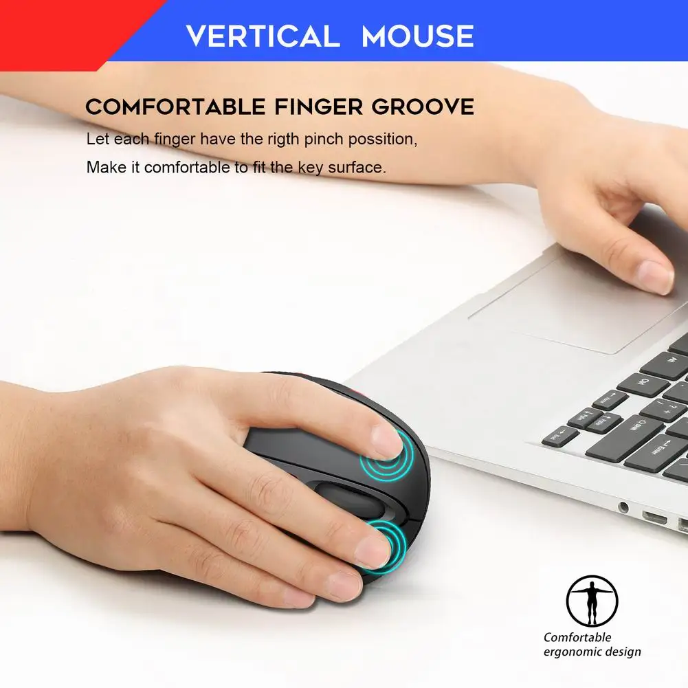 Эта беспроводная мышь Вертикальный эргономичный дизайн для вас, поможет вам избавиться от тиснения после длительного использования беспроводной мыши. Позаботьтесь больше о вашем здоровье. Избегайте синдрома запястного туннеля.