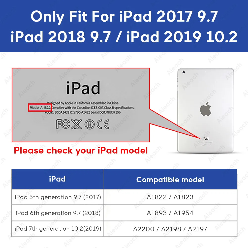 Пожалуйста, проверьте задний код iPad при покупке: Axxxx (четыре цифры), сравните с номером модели на картинке и подтвердите модель перед покупкой. Варианты применимы к 3 модели, для iPad 2019 10,2 дюймов (7th поколения)/для iPad 2018 9,7 дюймов (6th поколения)/для iPad 2017 9,7 дюймов (5th generation) . Пожалуйста, проверьте модель и купите ее в соответствии с моделью фото в опции. Если вы не уверены, какая модель, пожалуйста, не покупайте, свяжитесь с нами, чтобы помочь вам подтвердить, если неправильная покупка вызвана непроверкой модели, Продавец не несет ответственности, пожалуйста, знайте, спасибо! ! Хорошего дня!