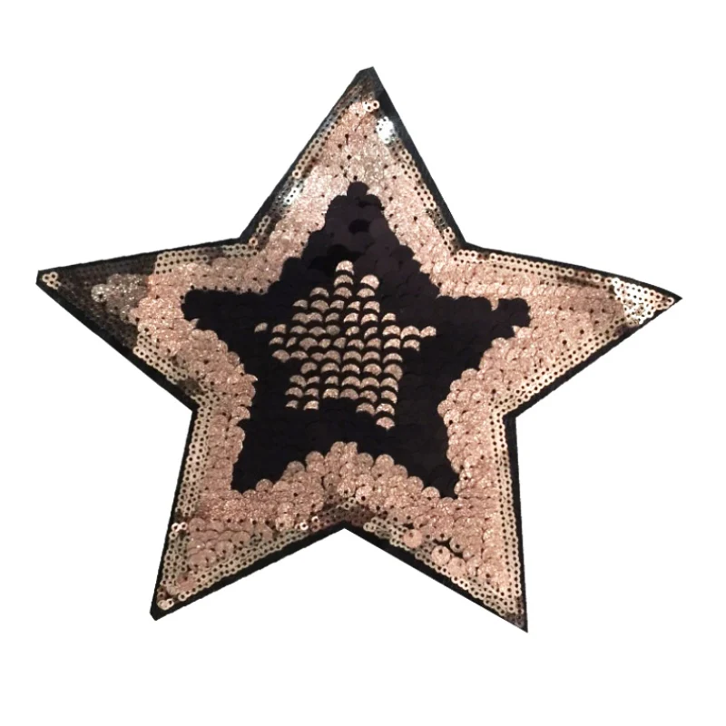 Особенности-форма пентаграммы в сочетании с блестящими блестками, причудливая и привлекательная.