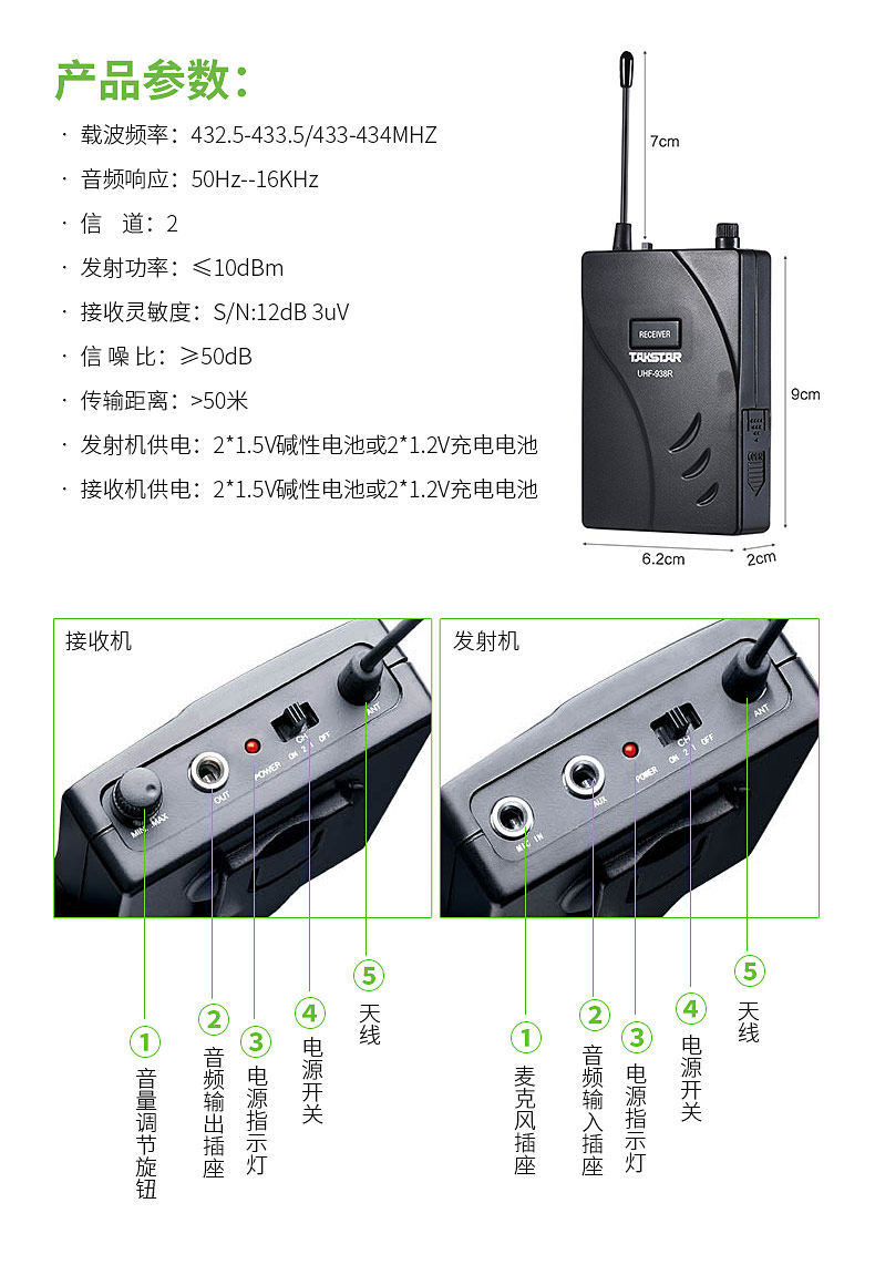 Обновленная версияБеспроводная система гида Takstar UHF-938 /UHF-938R, приемник только с наушниками (передатчик не входит в комплект)