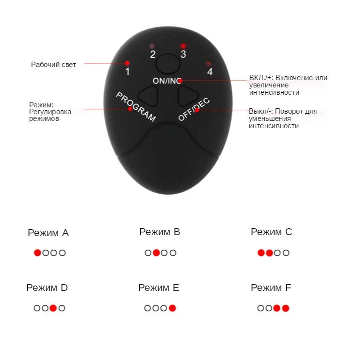 1. Для первого использования, пожалуйста, попробуйте низкую интенсивность, чтобы адаптировать устройство, позже вы можете попробовать более высокий уровень интенсивности.