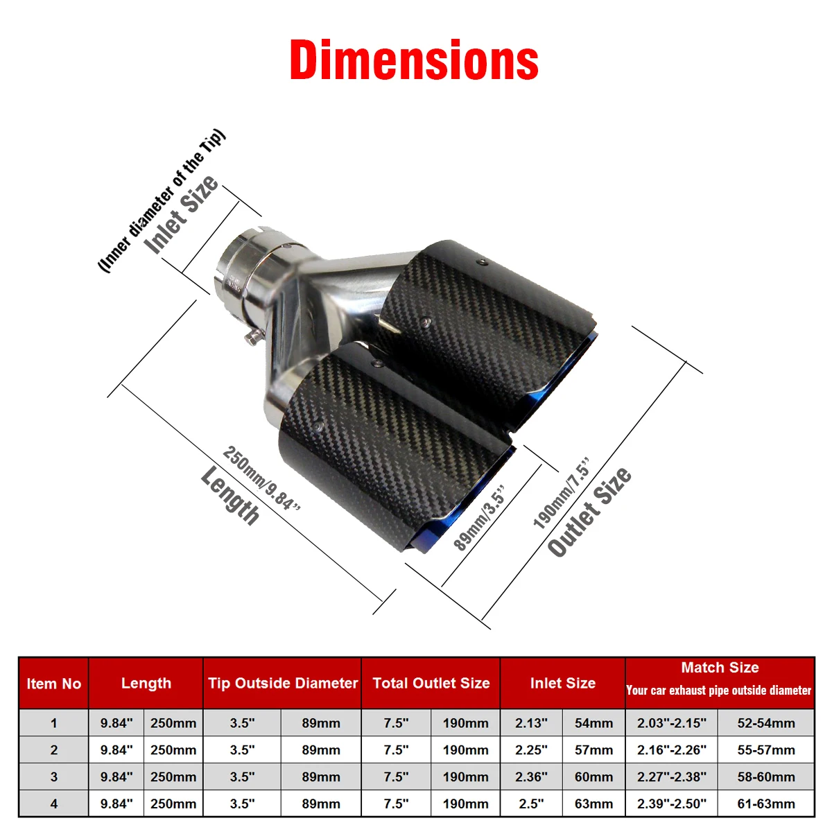 5. Прежде чем сделать заказ, пожалуйста, измерьте выхлопную трубу и задний бампер/балдахин/диффузор, чтобы убедиться, что эти наконечники подходят для вашего автомобиля.