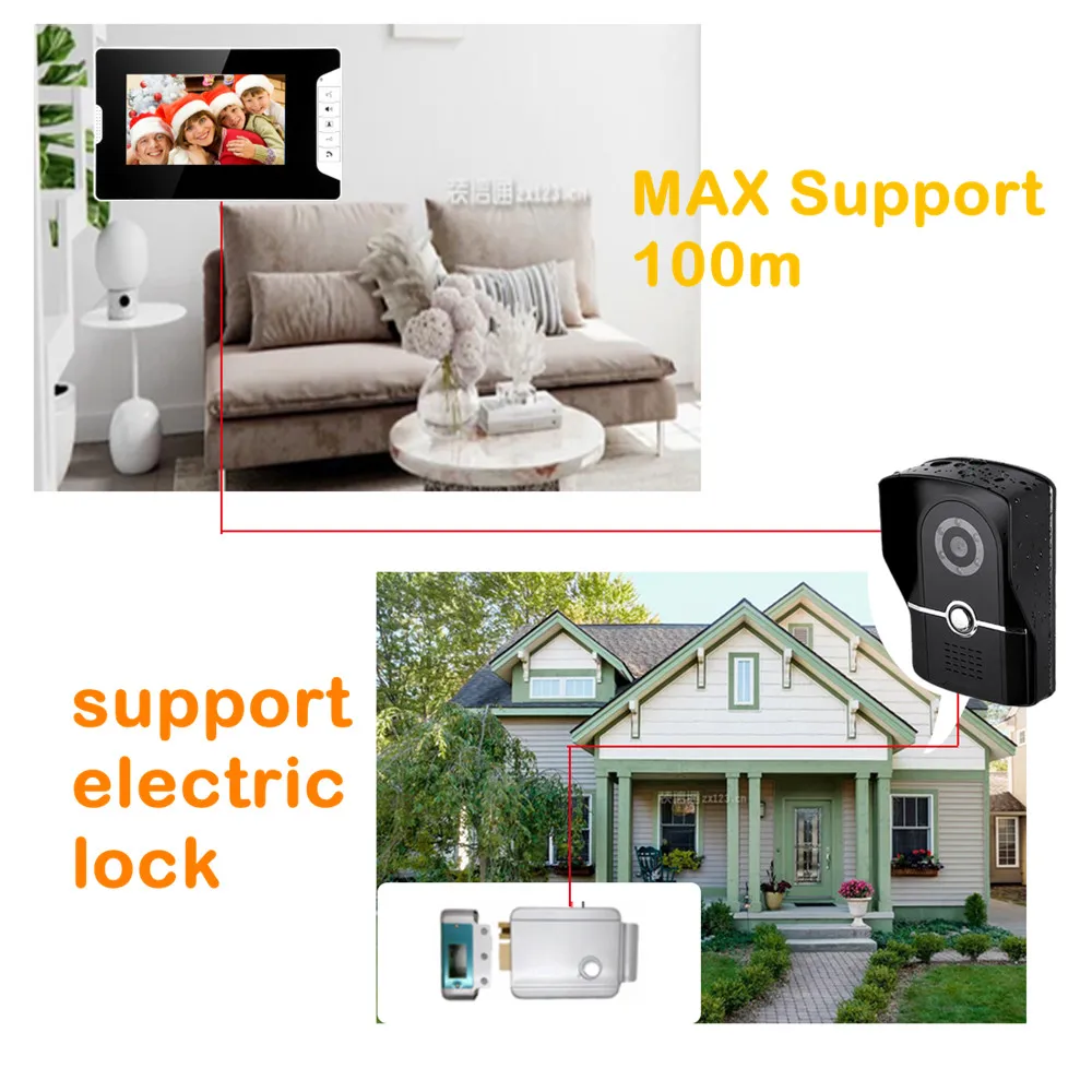 Наклон: Видеодомофон с камерой 1000TVL, проводной, 7 дюймов Oview: Внутренняя система видеодомофона: 7-дюймовый цветной TFT ЖК-дисплей видеодомофона достаточно большой и не имеет излучения, низкого энергопотребления и высокой четкости. Система видеодомофона для частных домов, квартир, домашних вилл, офисов, отелей, общественных зданий и так далее. Наружная Водонепроницаемая Инфракрасная видеокамера ночного видения с дверным звонком: Инфракрасная камера ночного видения HD 1000TVL позволяет четко видеть, кто звонит в звонок даже ночью, она может снимать изображения в условиях низкой освещенности, видеокамера может быть соединена с электрическим замком strike, поддерживает функцию разблокировки " Особенности: Проводной домофон Vide для домашней безопасности с панелью из алюминиевого сплава внутреннего блока, модный и роскошный. Небольшой дождь и устойчивость к окислению для наружного блока из прочного алюминиевого сплава. Цветной TFT ЖК-дисплей 7 дюймов без излучения, низкое энергопотребление и высокое разрешение. Проводной видеодомофон с ИК-камерой с инфракрасным ночным видением. Видеозвонок для функции электрической разблокировки-управления. Видеодомофон с громкой связью. Функция бесшумной внутренней связи. Наблюдение за внешней стороной двери. Электронный видеодомофон с 16 видами дверных звонков. Объем, яркость и контрастность регулируются. Простая установка самостоятельно с помощью адаптера и кабеля, которые мы предоставляем в этом комплекте. Характеристики наружной камеры: Наружная Водонепроницаемая видеокамера Камера: 1/4 "CMOS 1000TV линий Мин. Освещение: 0.5Lux Видеовыход: 1Vp-p/75Ω Вход адаптера: AC100 ~ 240 В, 50/60 Гц Выход адаптера: DC15V/1.2A Провода для подключения блокировки-камеры. Рабочая температура: от-20 °C до 50 °C Установка: Настенный Материал: АБС-пластик и алюминиевый сплав Размеры: 155*100*55 мм Спецификация внутреннего видеодомофона Экран: 7 "TFT/LCD Источник питания: AC100V-240V / 50-60 Гц Эффективные пиксели: 480*234*30 Мощность: ≤ 14 Вт (работа), ≤ 2 Вт (режим ожидания) Проводка: 4 провода Размеры: 240 × 150 × 20 мм
