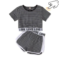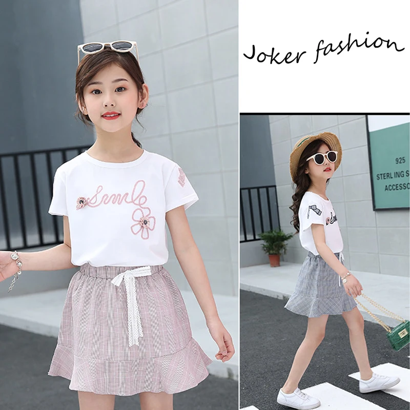 Одежда для девочек футболка с короткими рукавами и буквенным принтом из двух предметов юбка средней длины модная детская одежда Лидер продаж, качественная одежда, 2020