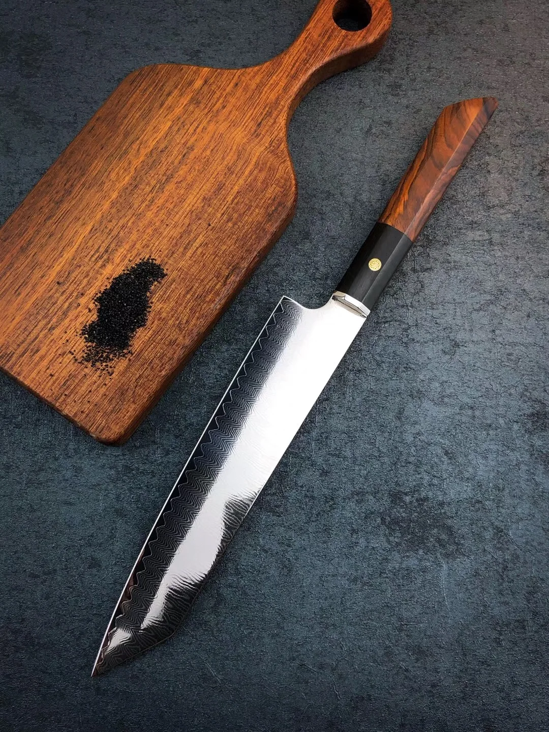 Длина: 33,5 см Длина лезвия: 20,5 см Ширина лезвия: 4,3 см Твердость: 60 HRC Сталь: дамасская сталь VG10