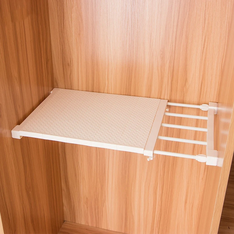 Retractable Storage Organizer is great to divide one compartment of cupboard or wardrobe into two layers which maximums the using space.