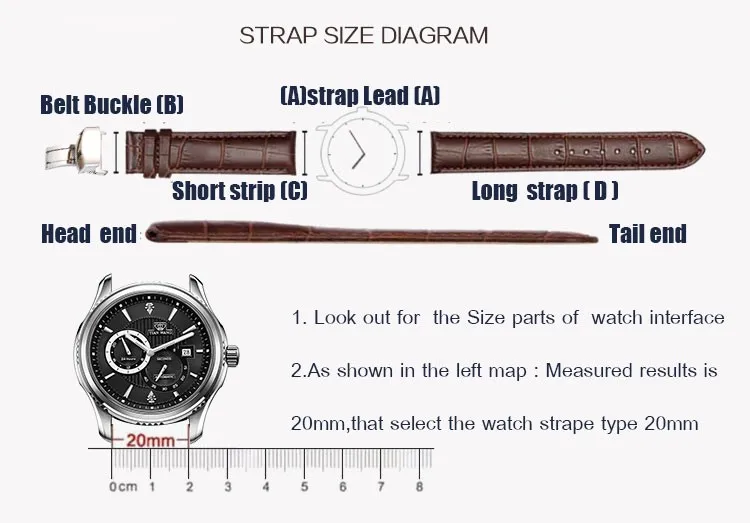 Материал: кожа Без белых линий ремешки-Размер: 12 мм 14 мм 15 мм 16 мм 17 мм 18 мм 19 мм 20 мм 21 мм 22 мм 24 мм Белые линии ремешки-Размер: 16 мм 18 мм 19 мм 20 мм 22 мм Толщина: 3,0 мм Длина: 125 мм + 75 мм см. Таблицу деталей Пол: Для женщин Мужчины Цвет ремешка: черный, коричневый Цвет застежки: черный, серебристый, золотой, розовое золото Подарок: инструмент для установки + аксессуары
