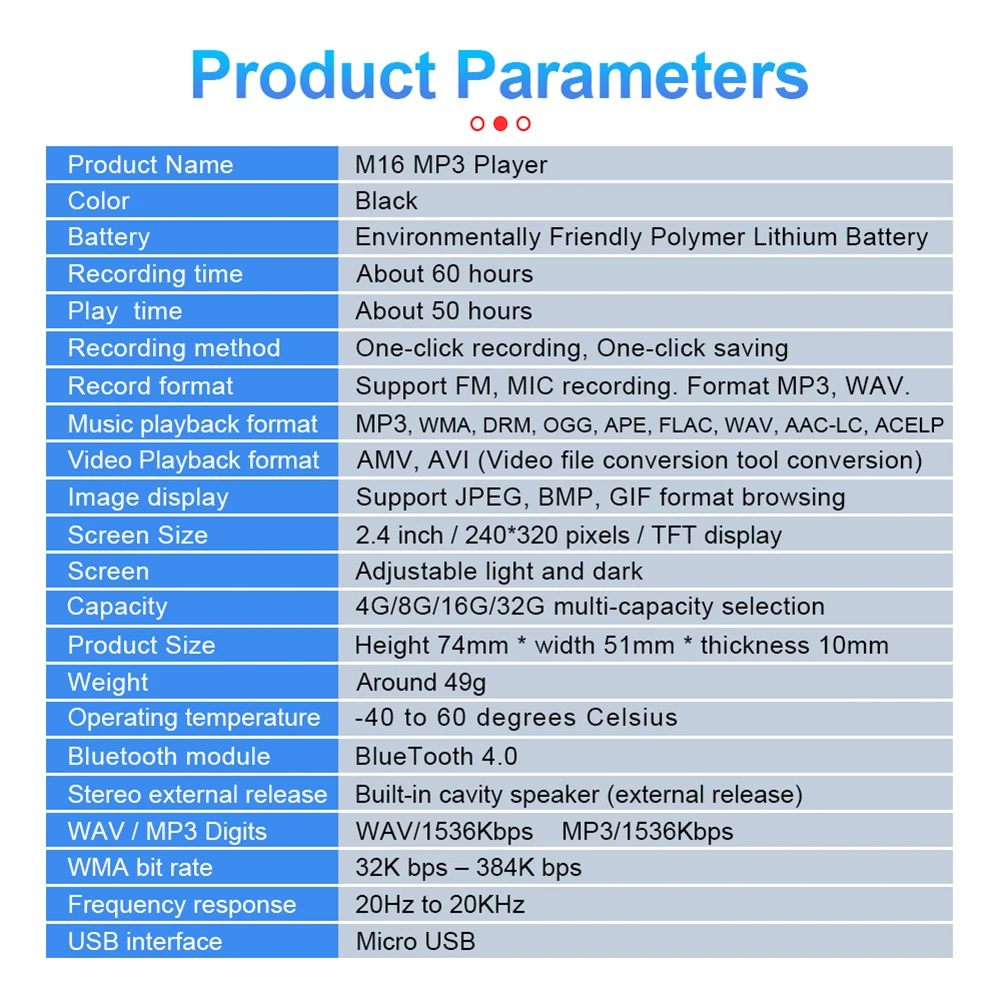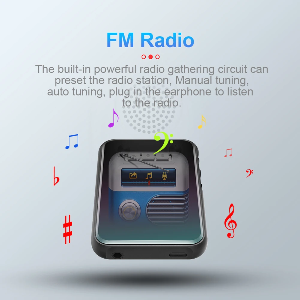 Поддержка записи: Поддержка FM, микрофон записи. Формат поддерживает MP3 и WAV.