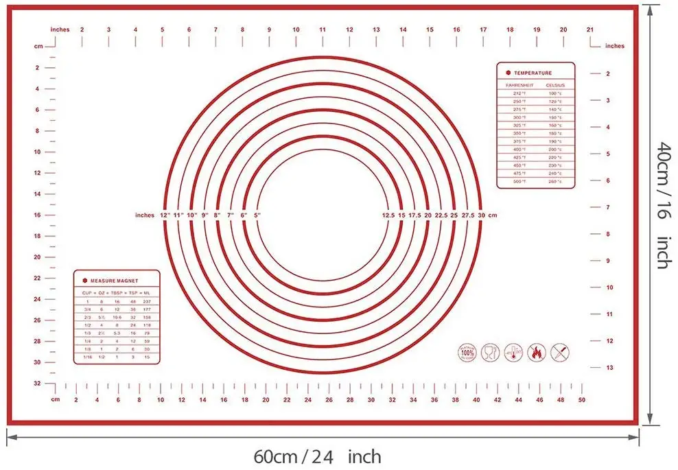 Абсолютно новый высококачественный Название продукта: силиконовый кондитерский коврик Вес (прибл.):130 г Размер (прибл.): 40*60 см/16*24 дюйма Материал: пищевой силикон