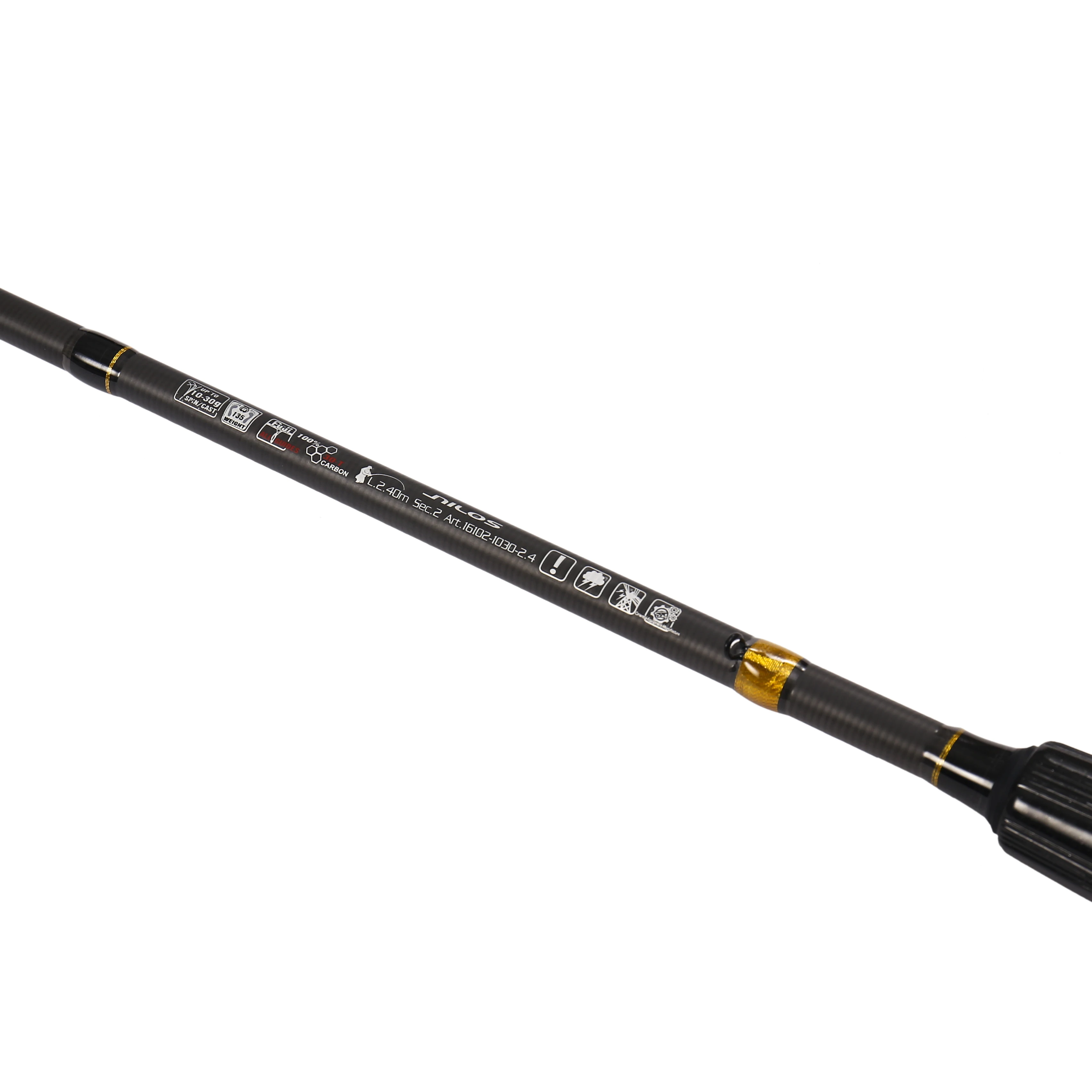Спиннинг изготовлен из карбона марки 30 T CARBON, оснащен кольцами ФУДЖИ (Размер-Вес-Сложенная длина) 2,10 м - 128 гр - 108 см 2,40 м - 135 гр - 125 см 2,65 м - 160 гр - 135 см