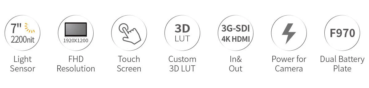 Монитор 7 "1920x1200 не только имеет разрешение и плотность пикселей, чтобы каждый снимок выглядел потрясающе, яркий 2200nit экран почти в 4 раза ярче обычных полевых мониторов позволяет снимать на открытом воздухе без отражения вымывания изображения. Это позволяет легко видеть на открытом воздухе без капюшона, что делает его легким для наружной съемки при ярком дневном свете!