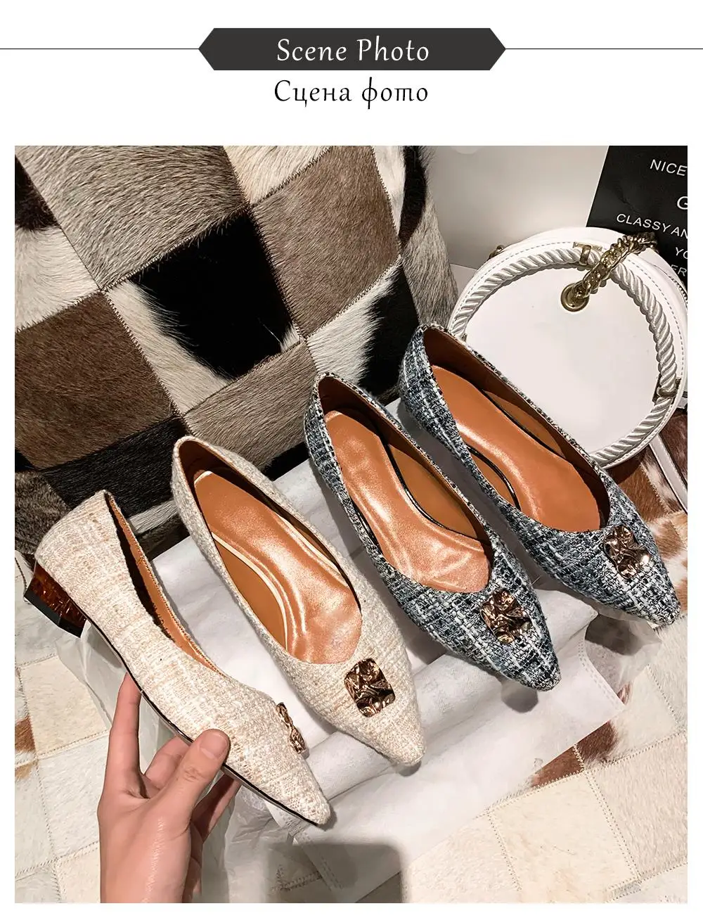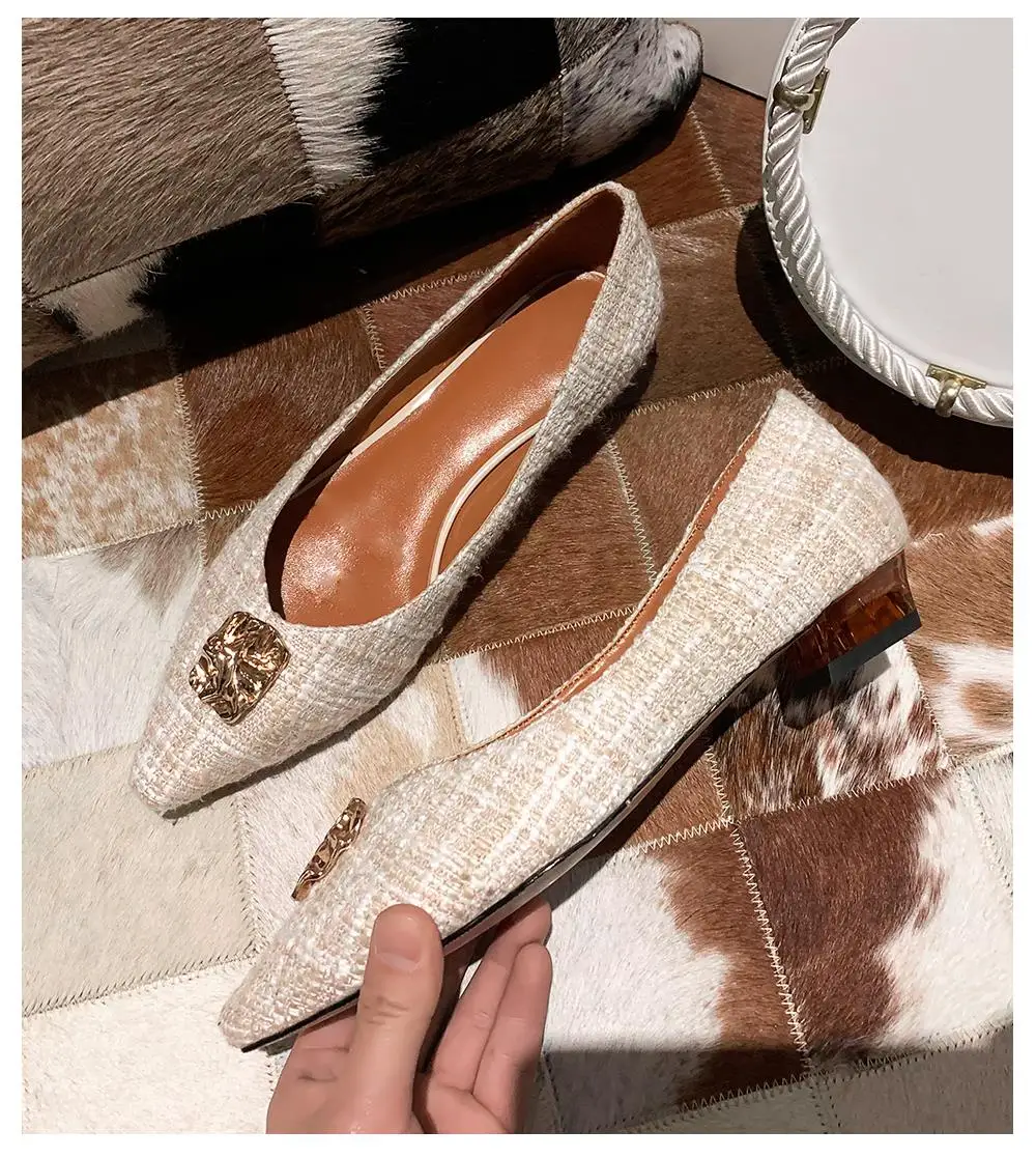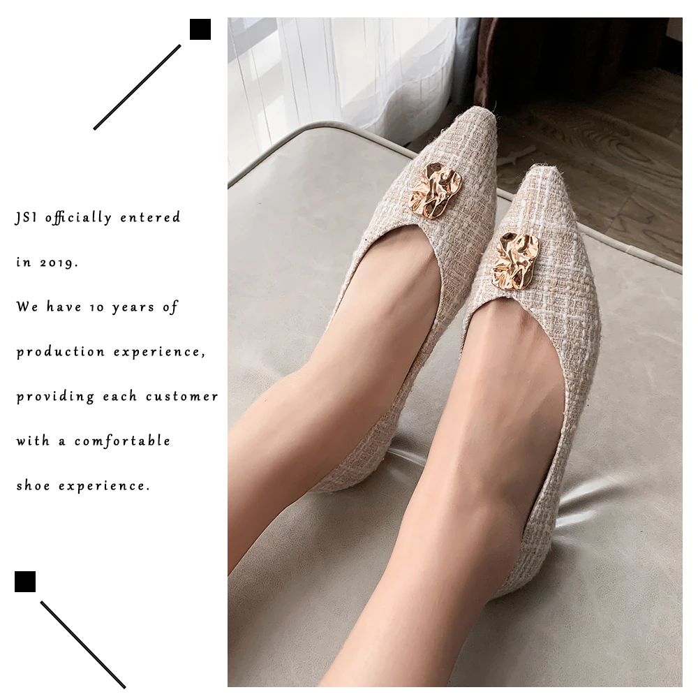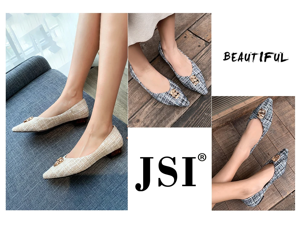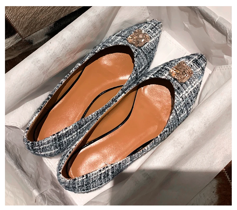 JSI/Женская обувь на плоской подошве с металлическим украшением; Высококачественная модная удобная обувь в клетку без застежки с острым носком; Элегантная обувь ручной работы на плоской подошве; JO484
