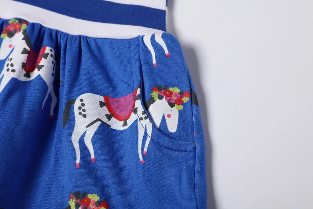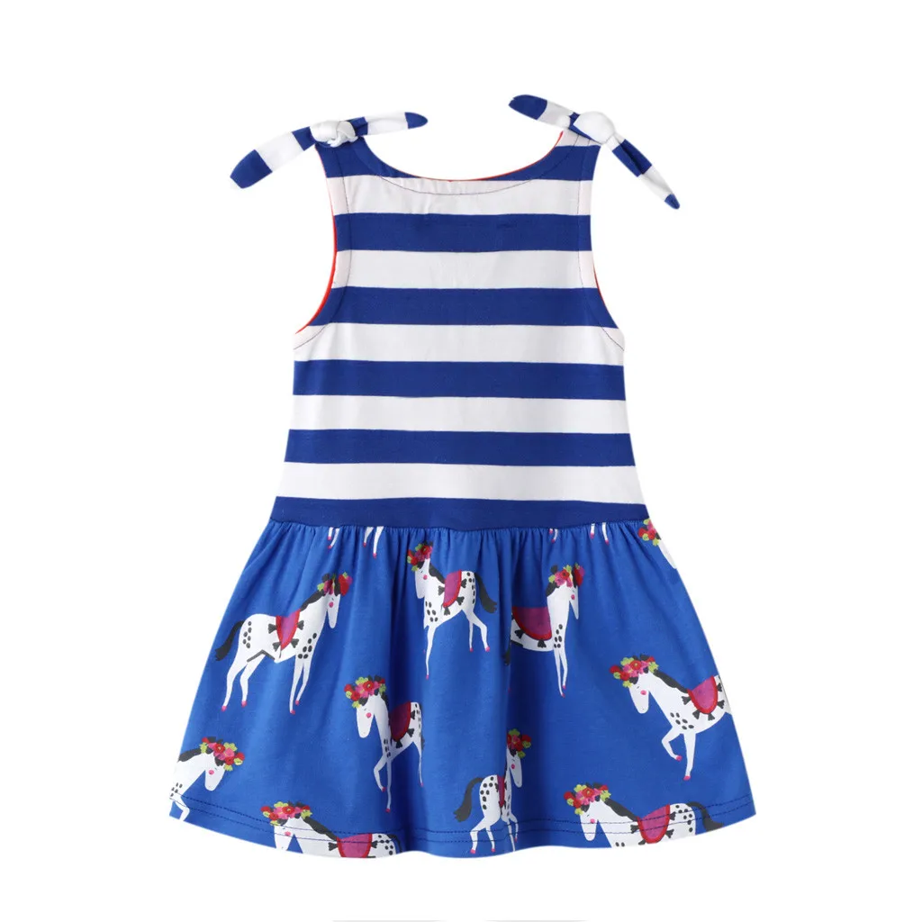 Платье принцессы в полоску с мультяшным принтом для маленьких девочек повседневная одежда