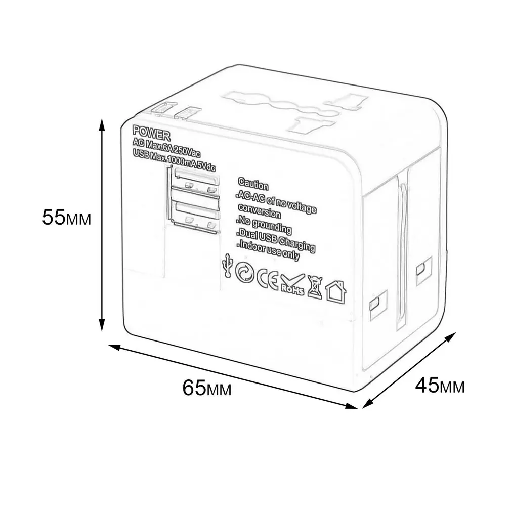 2USB порт, умная зарядка, Встроенный смарт-чип, автоматическая идентификация, распределение.