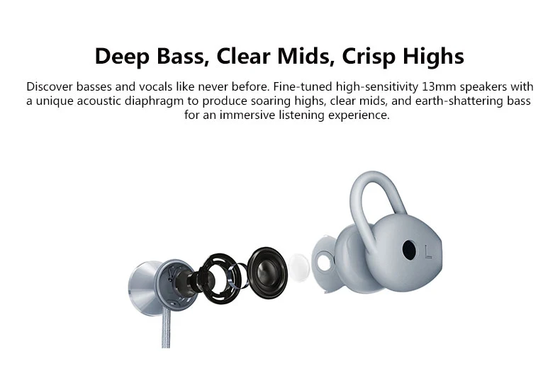 Откройте для себя басы и вокал, как никогда раньше. Тонкая настройка высокочувствительных 13-миллиметровых динамиков с уникальной акустической диафрагмой для получения резких максимумов, чистых средних частот и земляных басов для захватывающего прослушивания.