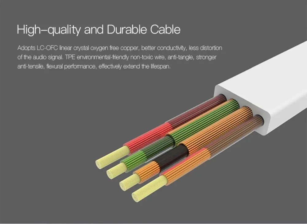 Принимает LC-OFC линейный Кристалл бескислородной меди, лучшей проводимости, меньше искажений аудиосигнала. TPE экологически чистый нетоксичный провод, анти-клубок, более сильный анти-растяжимый, изгиб производительности, эффективно продлить срок службы.