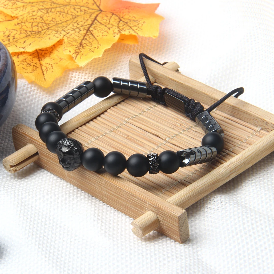 Материал: натуральный камень и голова льва из нержавеющей стали и бисер с логотипом