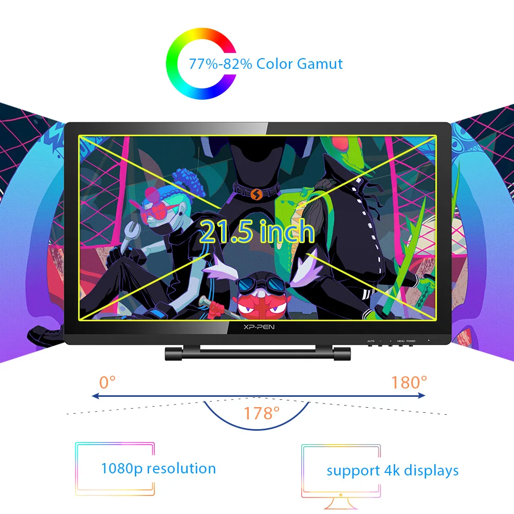 21,5 Дюймов дисплей функции 1080p Разрешение с 77%-82% точный Цвет цветовой охват и экстра-широкий 178 ° угол обзора. Обеспечивает яркие цвета и безграничный потенциал для деталей.