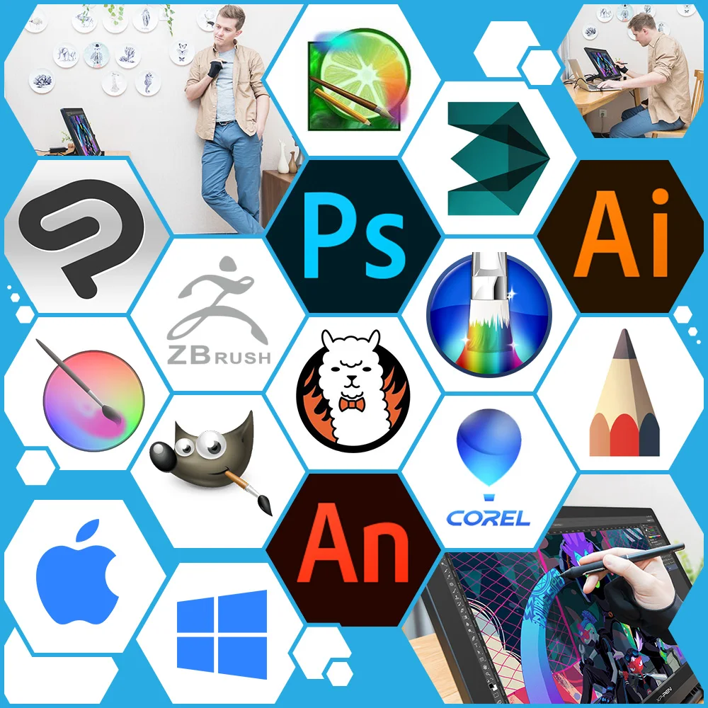 Поддерживает Windows®7/8/10 и Mac OS X®10,10 или более поздней версии. Совместим с популярным цифровым программным обеспечением, таким как Adobe®Фотошоп®, Corel®Художник®, Клип студия®, SAI®, Zbrush®, Medibang®, Гармония Toonboom®И многое другое!
