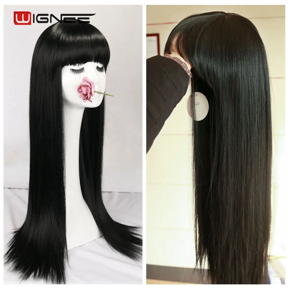 Длинные прямые черные синтетические парики Wignee с челкой для черных/белых женщин, парики для косплея/вечерние/костюма, парик из натуральных волос без клея