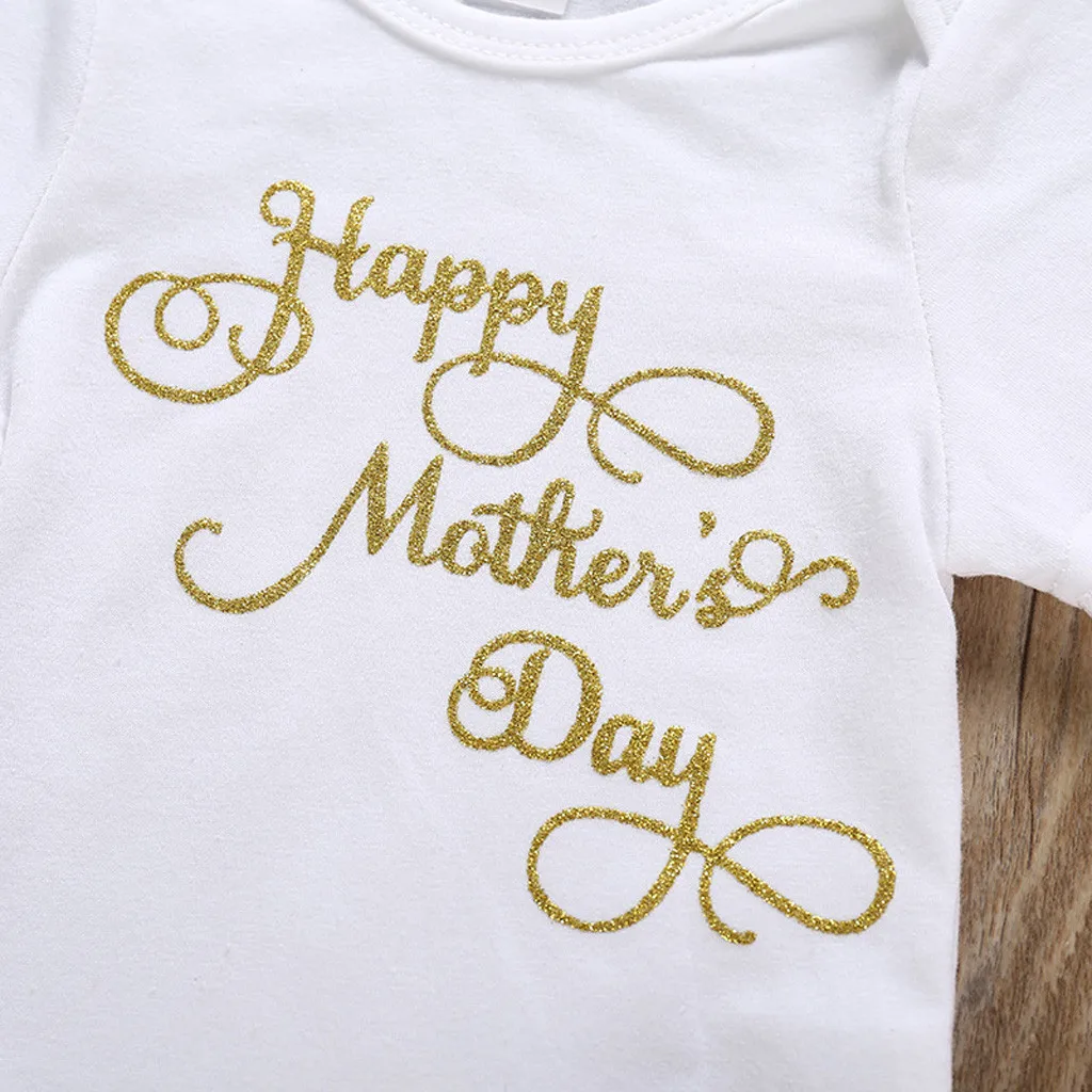 Newborn Baby Girl Letter Romper Skirt Headband Band Leg Warmer Mother's Day Set