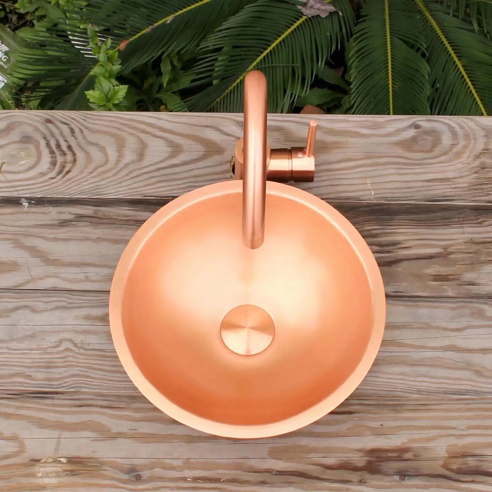 Круглая медная раковина Описание Гладкая поверхность Новый Пенни Общий размер: 11 "H x 32" Dia. Размер чаши: 11 "H x 29" Dia. Толщина: 16 Калибр