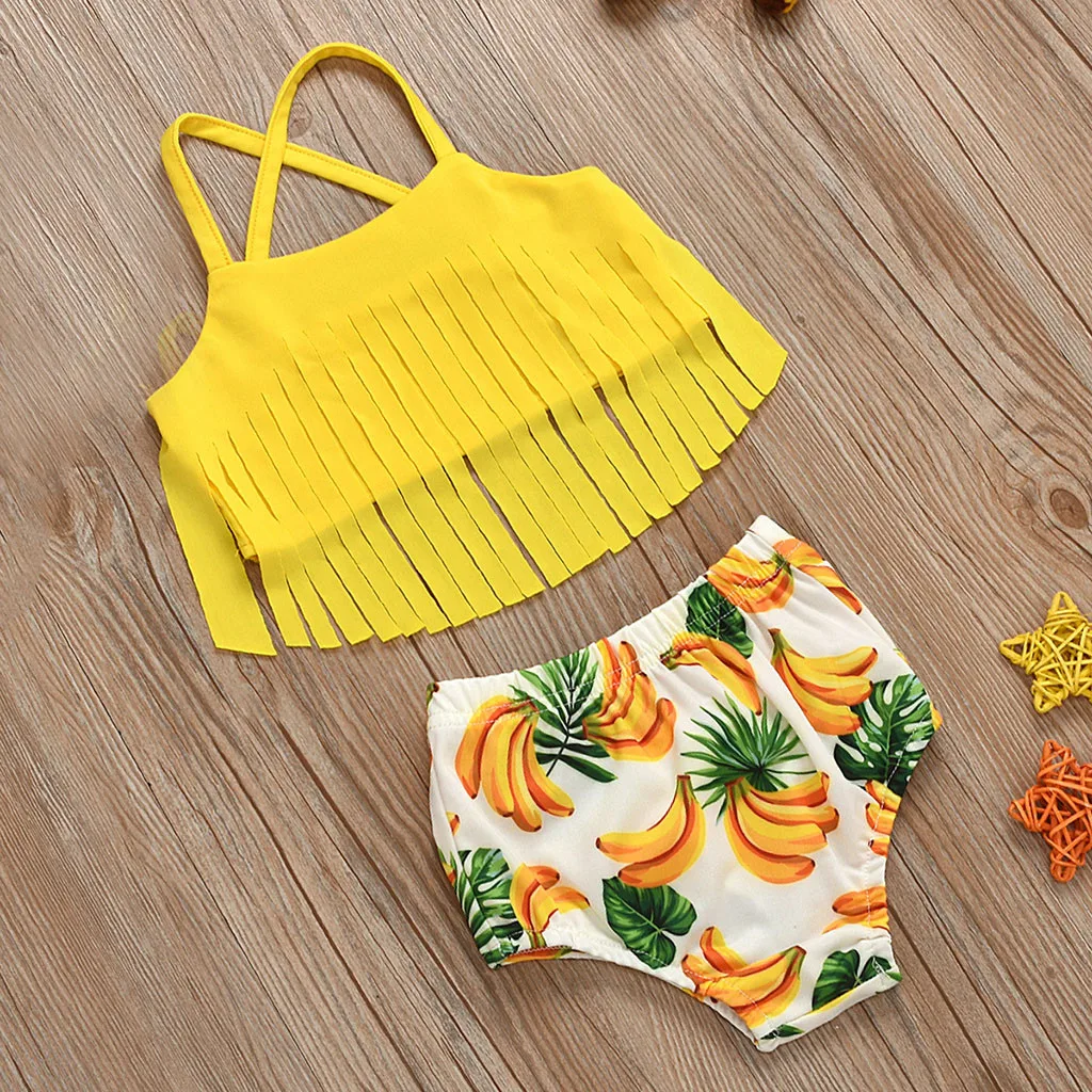 Жилет на подтяжках с принтом для маленьких девочек топы с открытыми плечами, шорты, одежда