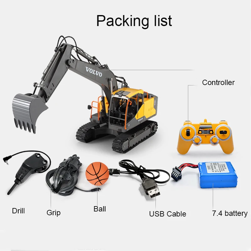 Название: 3 в 1 RC экскаватор Материал: АБС + сплав Масштаб: 1:16 Частота передатчика: 2,4G Размер изделия: 61,0*17,0*41,0 см Батарея для передатчика: 2 х 1,5 В батарейки типа АА (не входят в комплект поставки) Батарея для автомобиля: 4,8 в 400 мА/ч, Перезаряжаемые Батарея (все указанные аккумуляторы входят в комплект поставки) Время работы: около 20-25 минус Каналы управления: 17 каналов Расстояние управления: около 20-25 м Время зарядки: 4-5 часов (первый совет 8 часов)