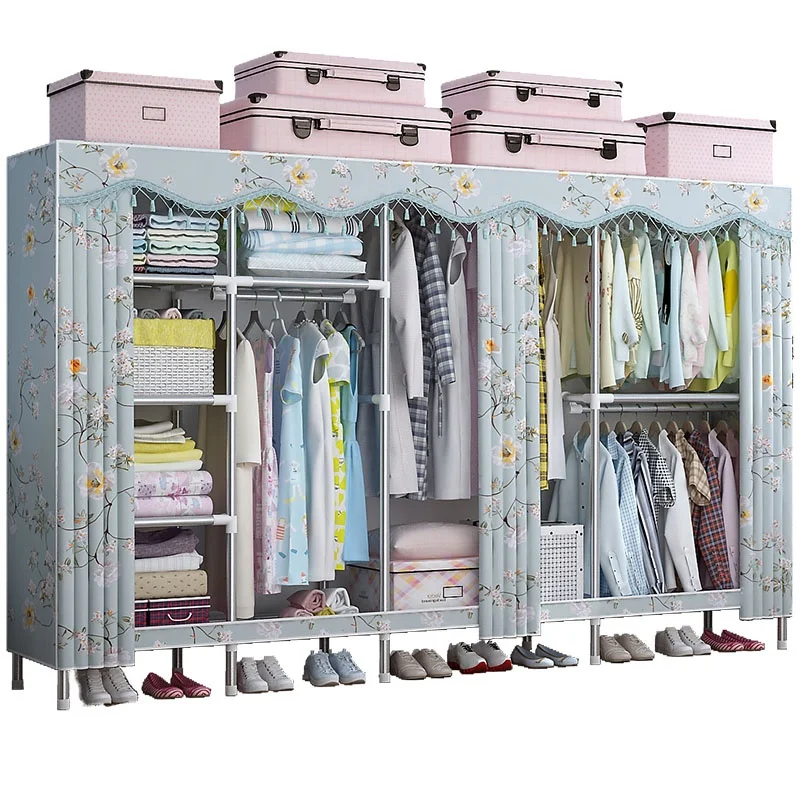 Стальная труба, утолщенный шкаф, простая ткань, шкаф для дома, все стальные рамы, шкаф для одежды, шкаф для одеждыUS $127,16 /