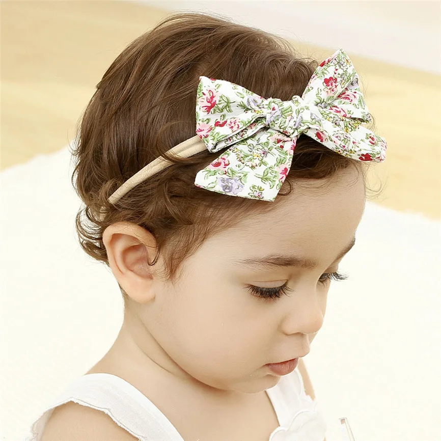 Комплект детской одежды из 3 предметов, повязка на голову с цветочным принтом для маленьких девочек; Эластичные Bowknot аксессуары набор для волос