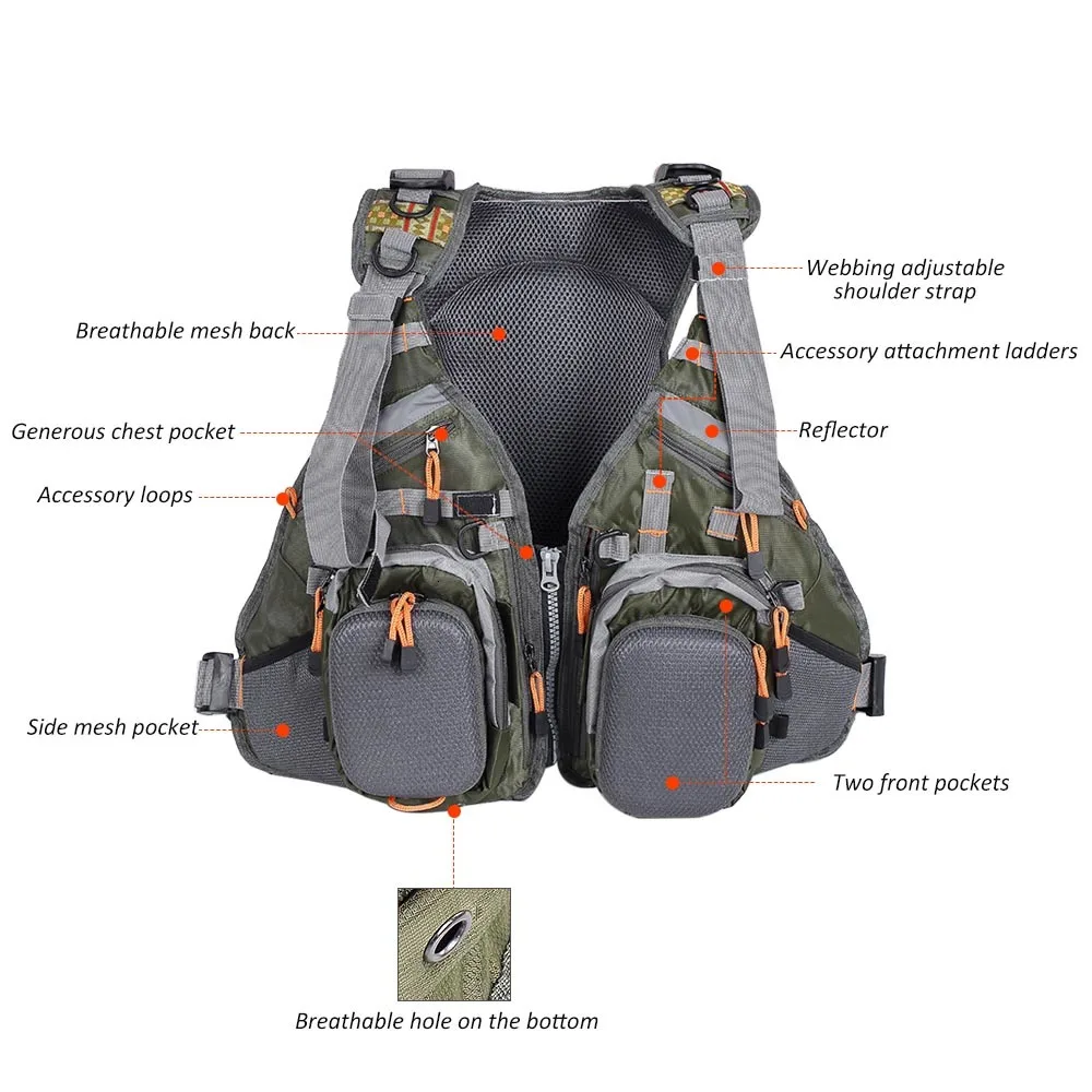 3 в 1 сетчатый жилет для ловли нахлыстом и рюкзак, дышащий спасательный жилет для рыбалки на открытом воздухе, спасательный жилет для рыбаков
