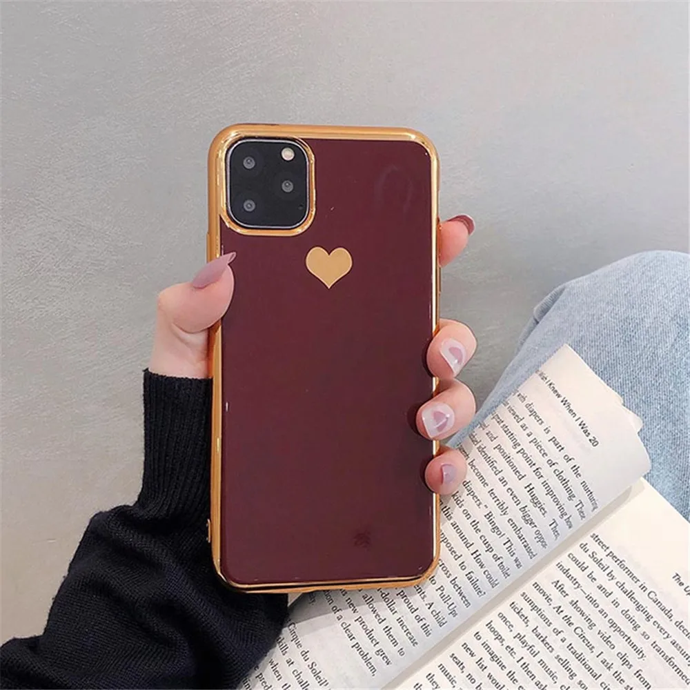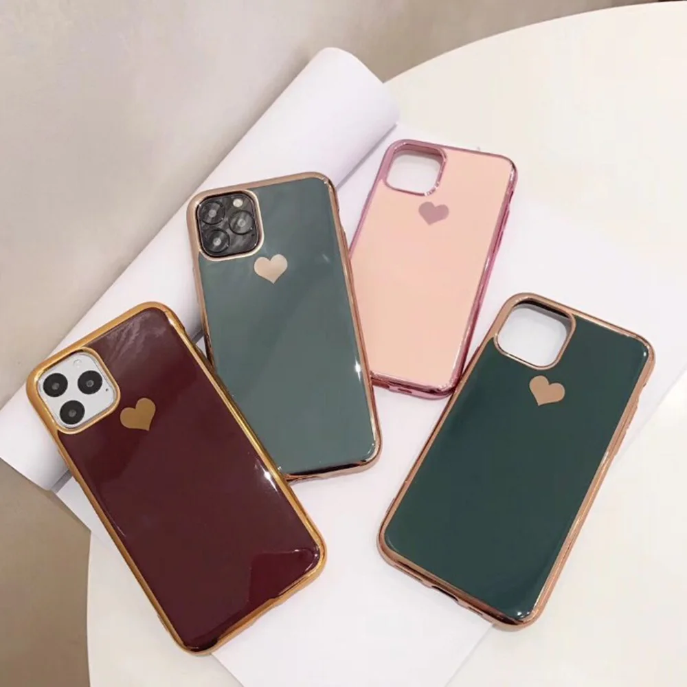 Роскошный Гальванизированный чехол для телефона с сердечком для Apple iPhone 11 Pro X XS Max XR мягкий модный силиконовый чехол из ТПУ для iPhone 6 6S 7 8 Plus