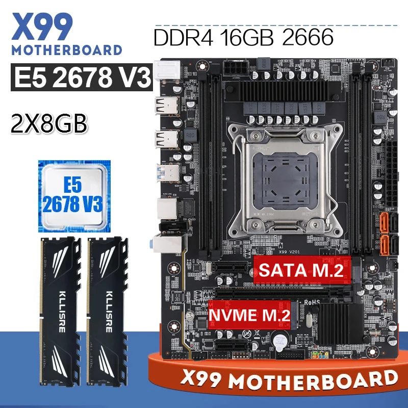 Kllisre X99 настольная материнская плата + E5 2678 V3 + DDR4 2X8GB 2666