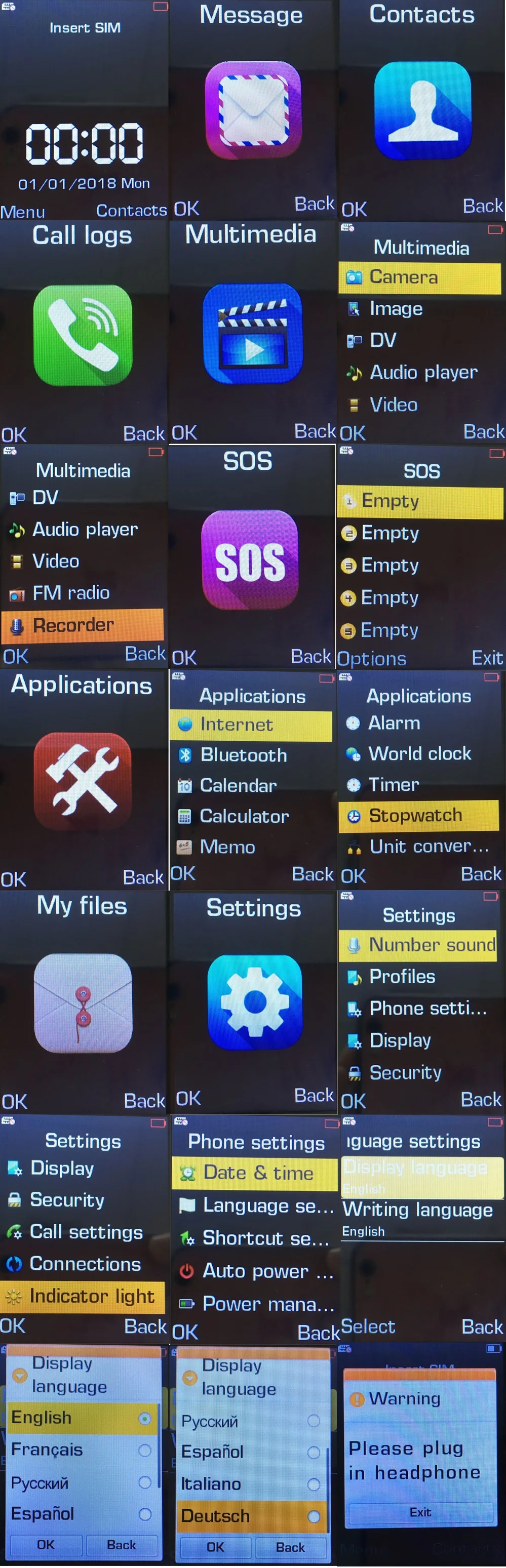 GPRS, MMS, Bluetooth, аудио, говорящая клавиатура, FM, фонарь