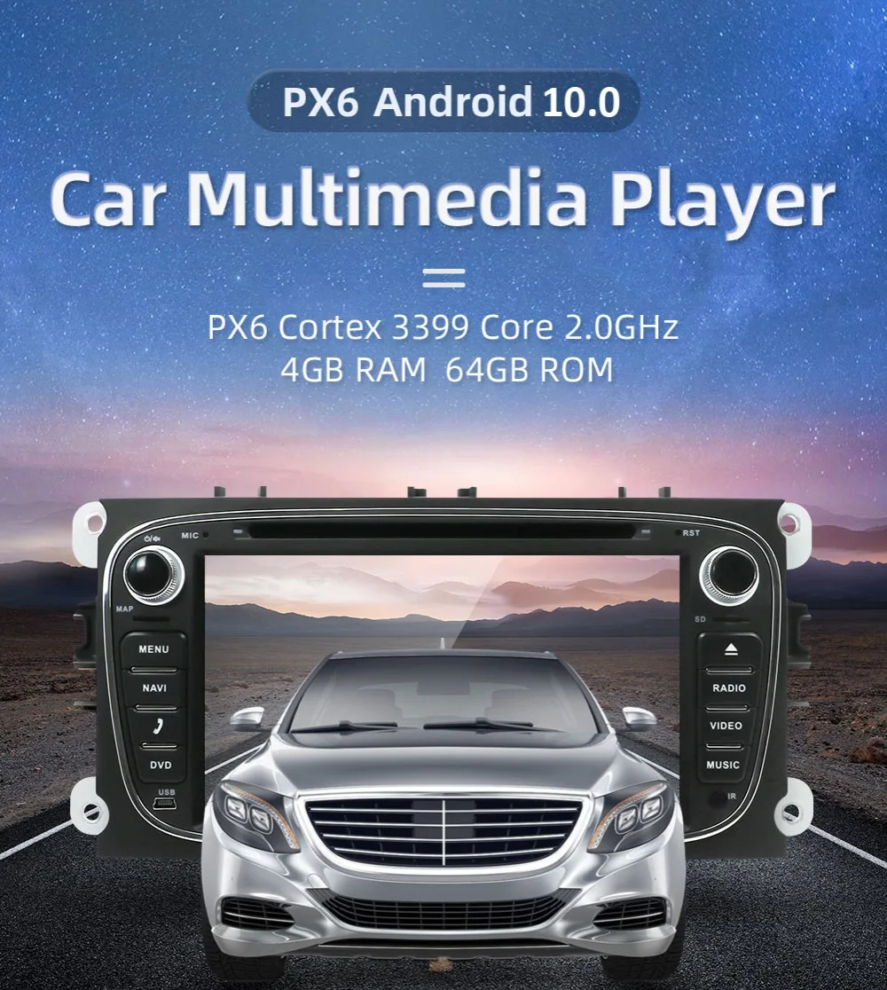Для Ford/Focus 2008-2011Для Ford/S-Max 2008-2011Для Ford/C-Max 2008-2011Для Ford/Galaxy 2010-2012Для Ford/Kuga 2008 ~ 2012B903 с DSP:1. Процессор: PX6 Cortex A72 + A53, Android 10,02. Усилитель IC: 7803 радио IC: TDA 7786 Bluetooth: 5,0