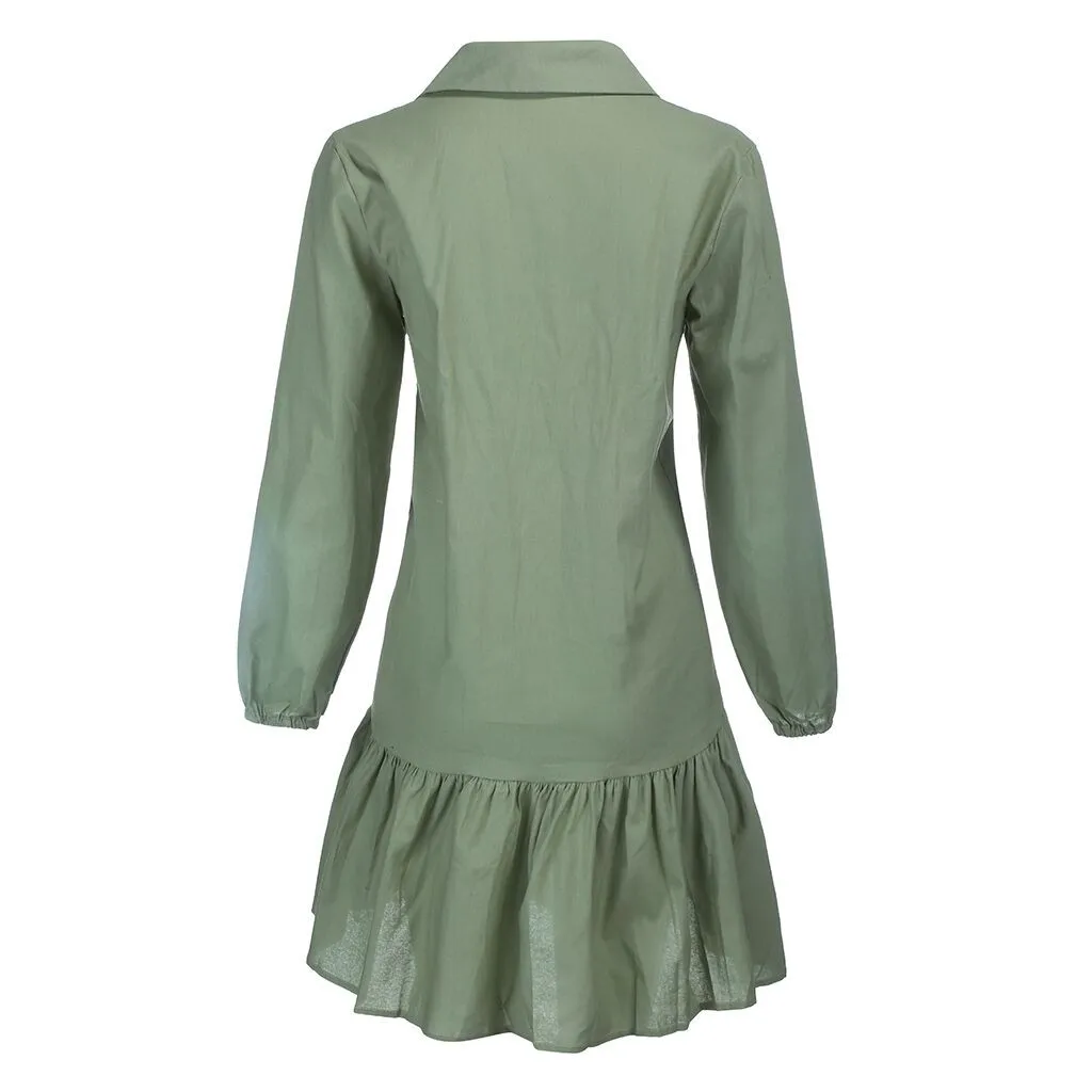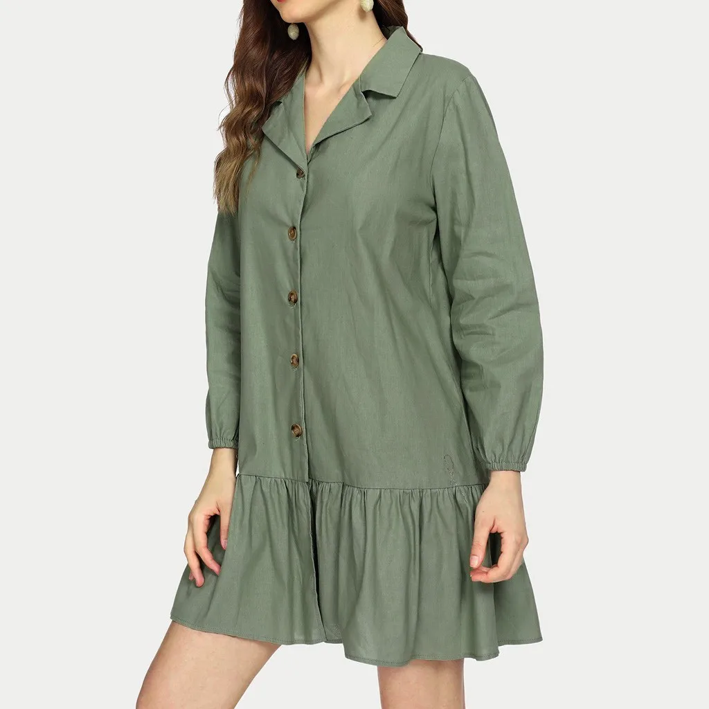 Модное женское летнее повседневное хлопковое и льняное платье с длинными рукавами и пуговицами