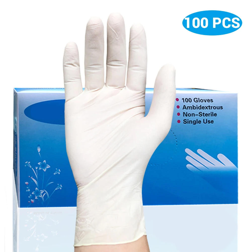 100 шт одноразовые латексные перчатки для санитарного осмотра универсальные бытовые нитриловые резиновые антистатические латексные перчатки для осмотра