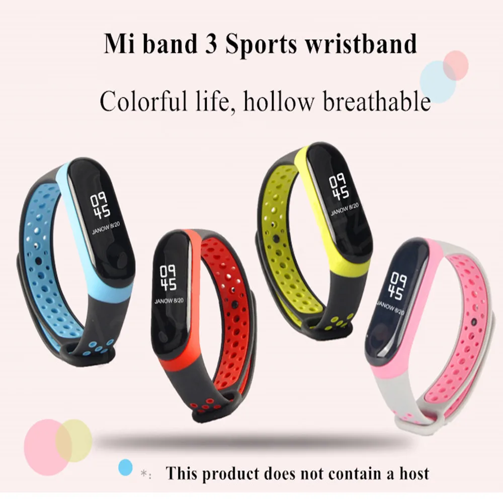 Силиконовый ремешок на запястье для Xiaomi Mi Band 4, 3, 10 цветов, двойной сменный ремешок для часов Mi Band 3, 4, умные аксессуары