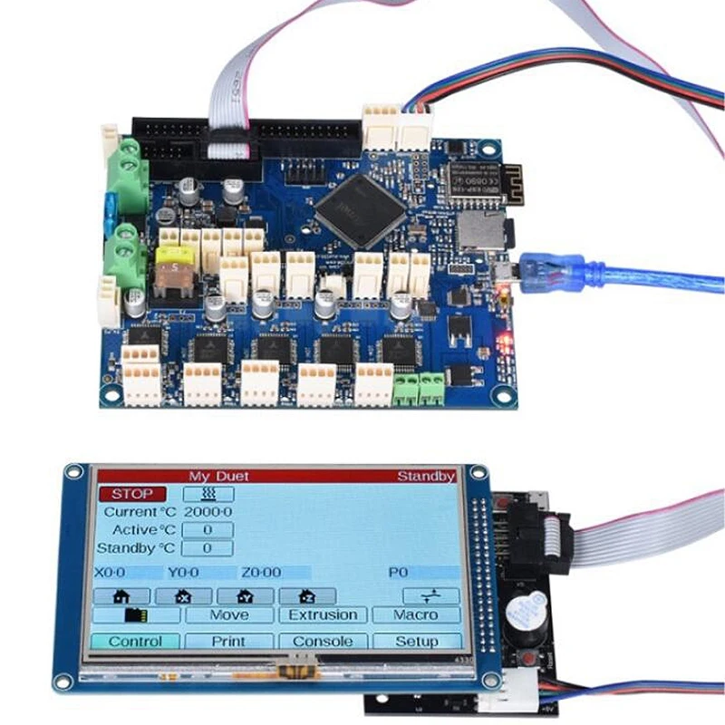 Мощный 32-битный процессор: Atmel SAM4E8E: тактовая частота 120 МГц, сердечник ARM Corte-M4 подключен к веб-интерфейсу Duet с помощью ПК, планшета или смартфона в той же локальной сети, без установки приложений, непосредственно через браузер Управляйте принтером, загружайте файлы и начинайте печать