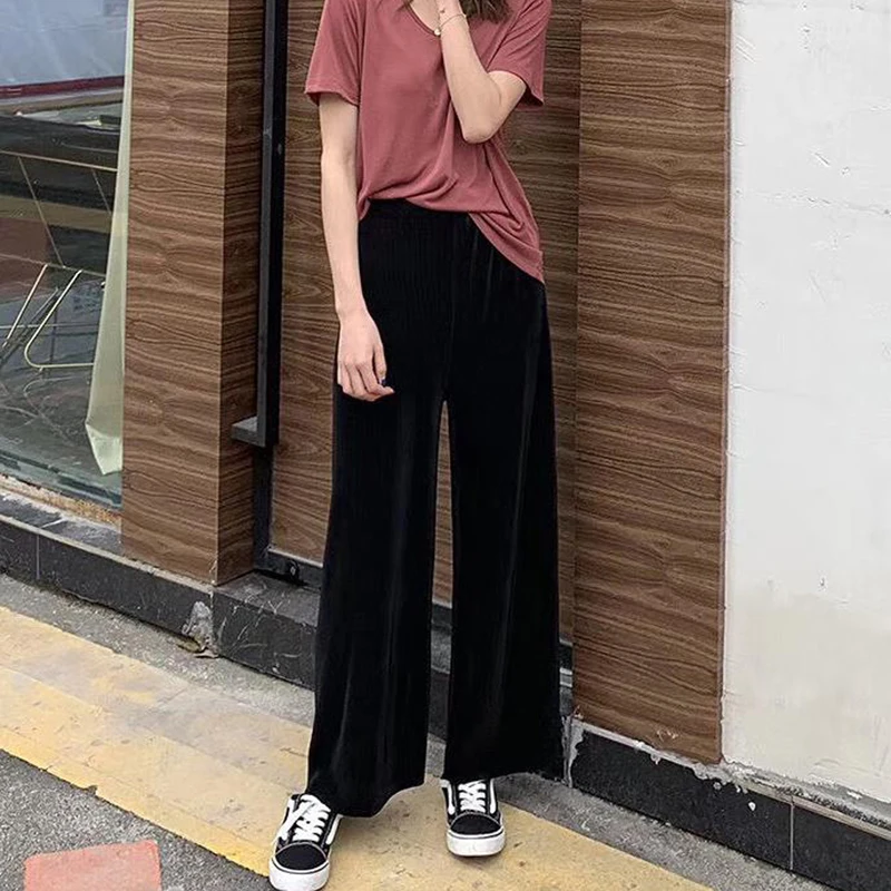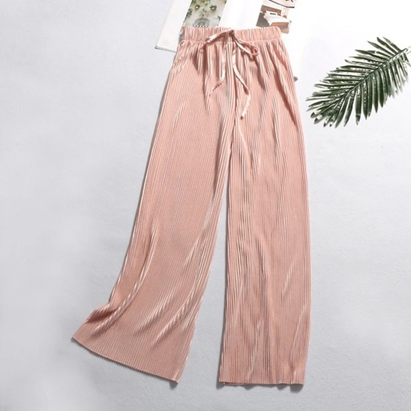 Летние женские свободные брюки с завышенной талией, тонкие широкие брюки, Длинные свободные брюки, брюки в Корейском стиле, модные сексуальные штаны