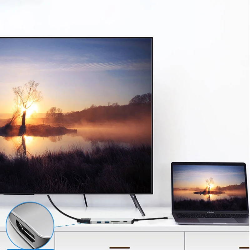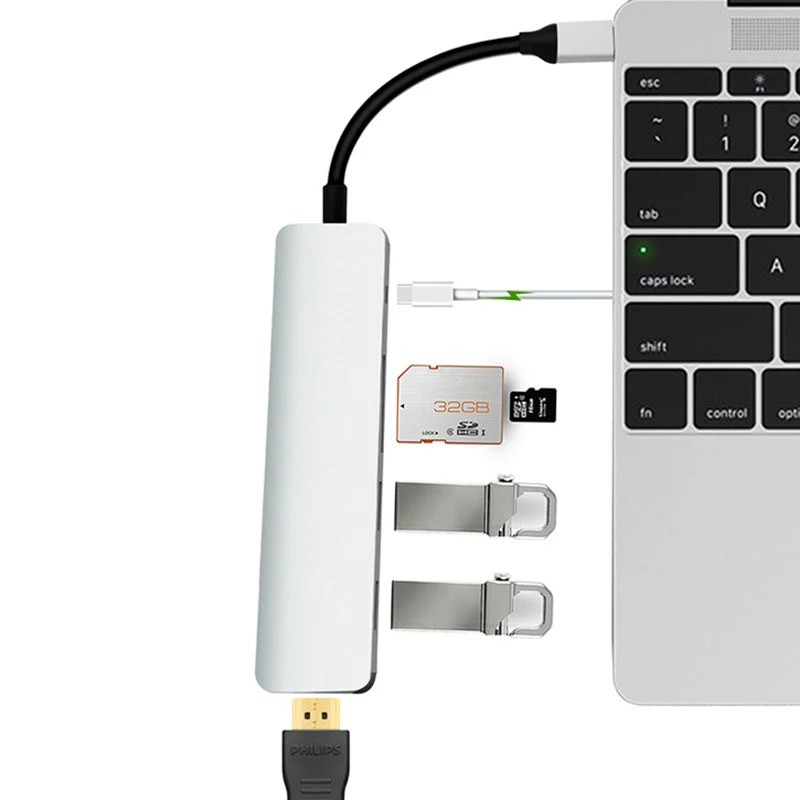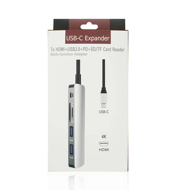 6-в-1 USB C концентратор: usb-c порт для зарядки, TF,SD, USB C на HDMI выход, 2 порта USB 3,0, гигабитный Ethernet порт (порт RJ45).