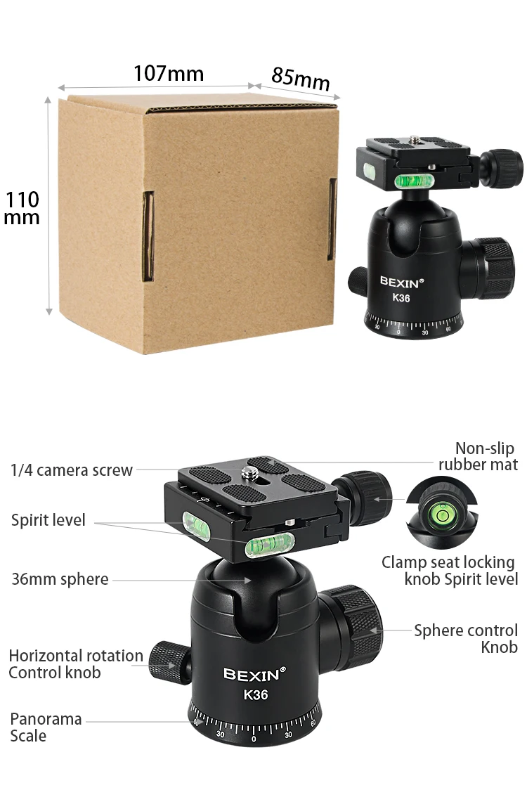 BEXIN K-36 rotating tripod head photo camera stand ball head panoramic shooting head dslr viedo mount adapter for point camera