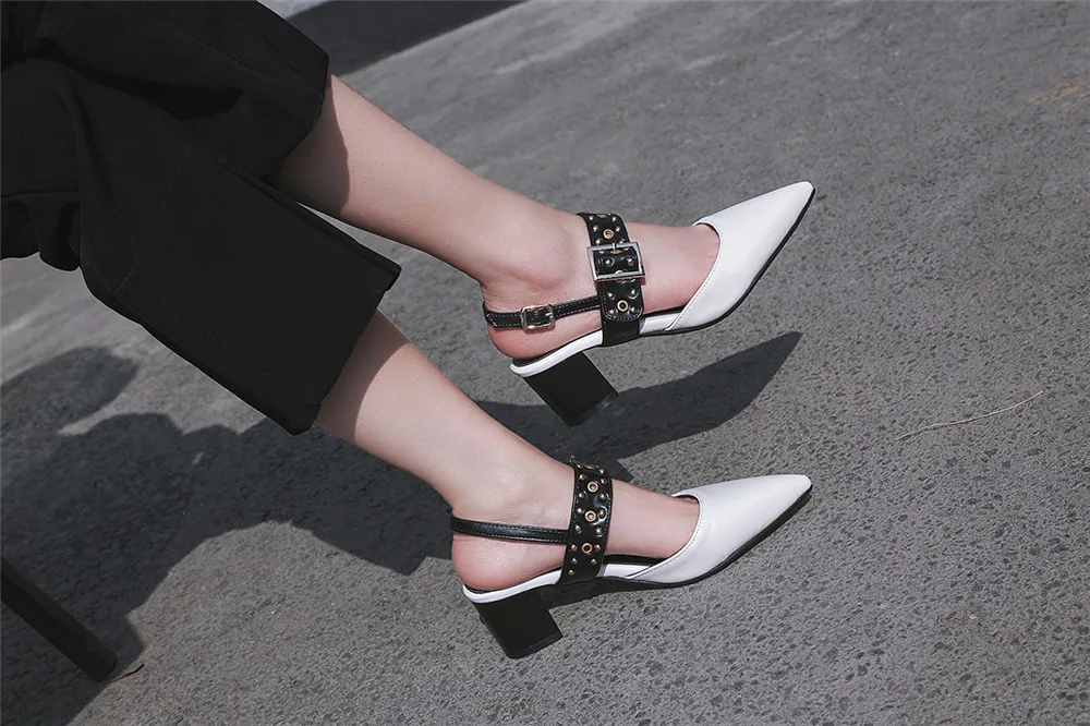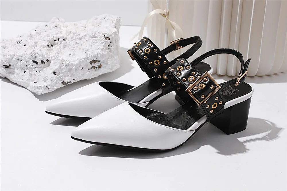 MILI-MIYA New Arrival Women Sandals Fabric&Pu Buckle Strap Ankle Wrap Square Heels Square Toe Dress Summer Shoes For Ladies
