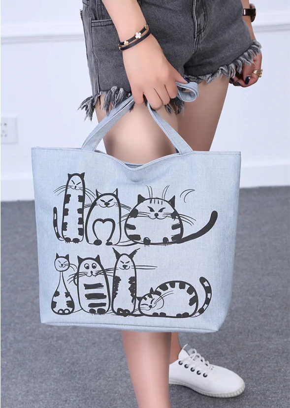 Женская Холщовая Сумка через плечо с цветочным принтом, сумки для покупок