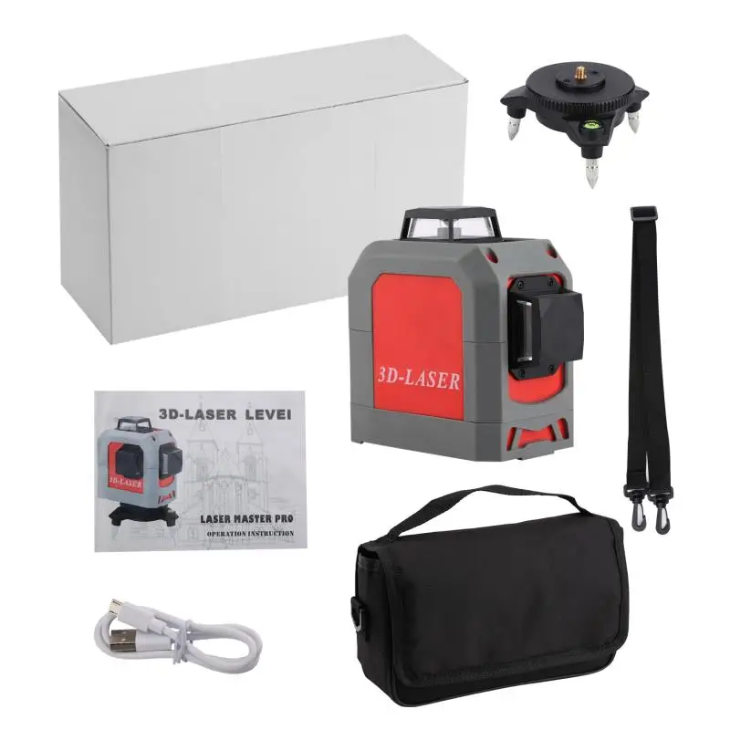 1 × лазерный уровень 3D 1 × основание штатива 1 х тканевая сумка Ремень-1 шт. 1X line Инструкция (1 шт.)