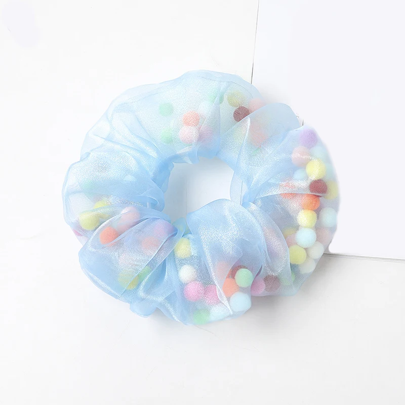 Прозрачная резинка из органзы с цветными сетчатыми шариками, кольцо для волос с конским хвостом, веревка для волос