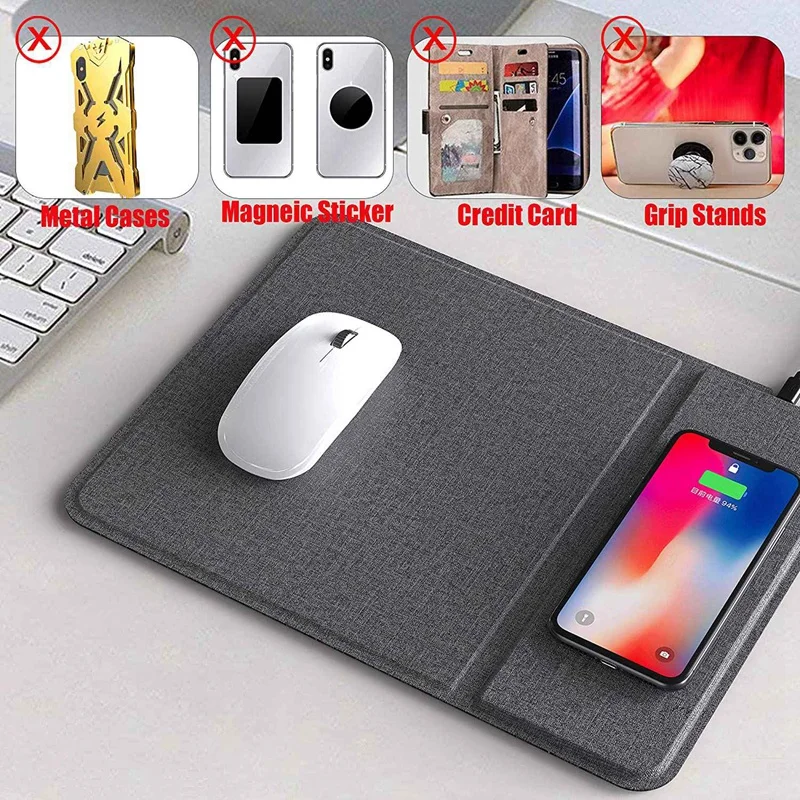 [Qi Быстрое беспроводное зарядное устройство коврик для мыши-как использовать] интегрированная беспроводная зарядка в коврик для мыши, предлагает уникальное удобство пользователя. Заряжайте телефон легко, просто поместите телефон на место зарядки и включите питание устройства. Лучше снять чехол для телефона перед зарядкой. (Без металла/магнитного/железного корпуса и т. Д.)