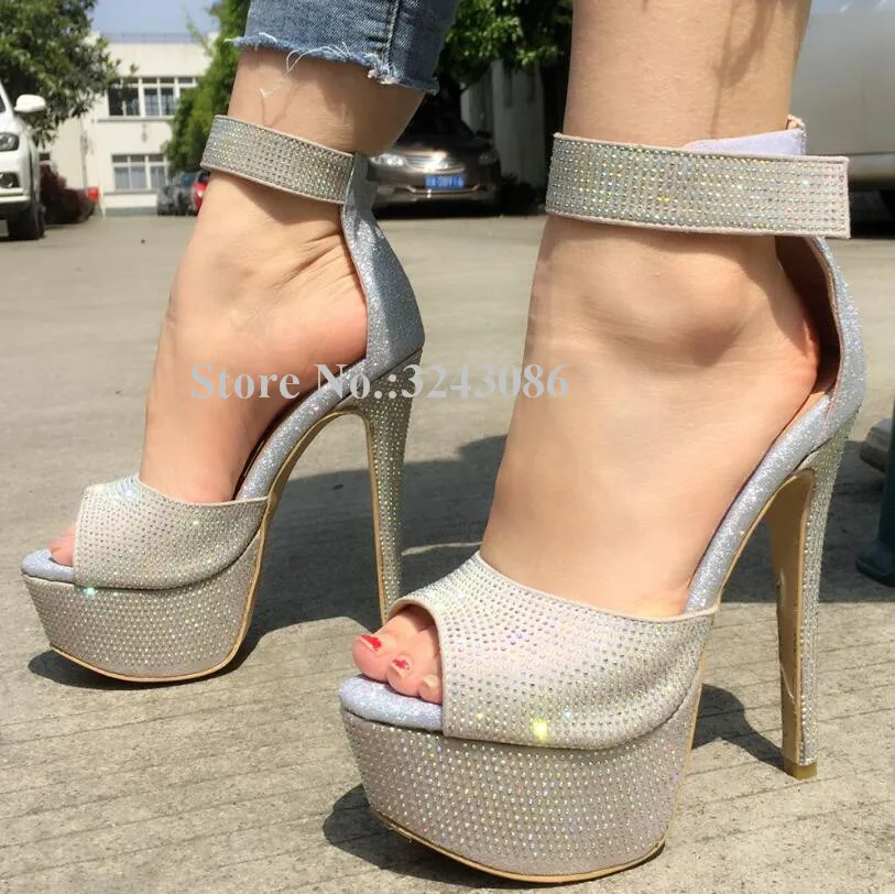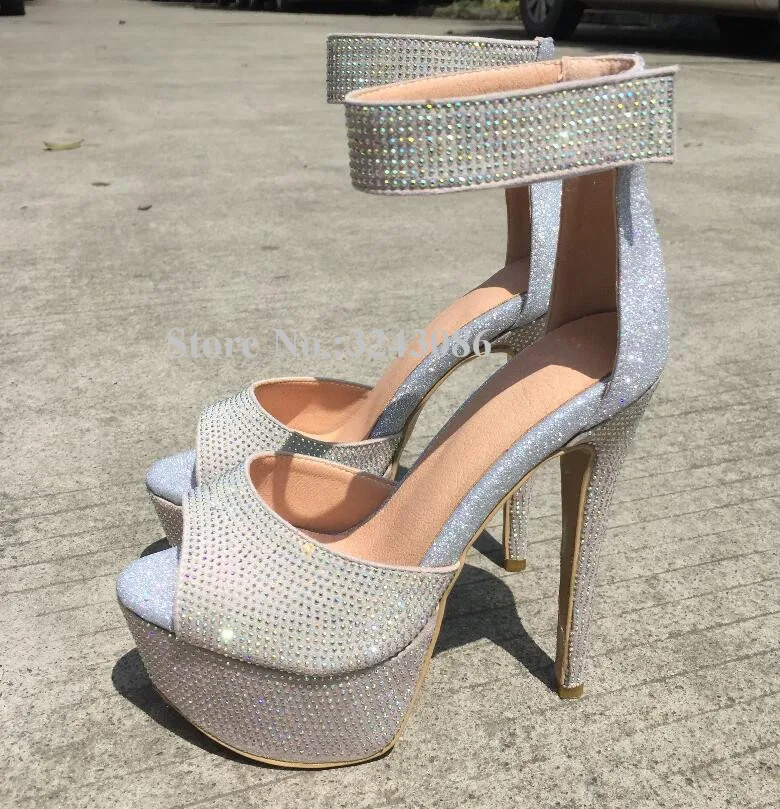 Women New Platform Crystal Sandals Fashion Peep Toe Ankle Buckle Stiletto Heel Gladiator Sandals Lady Real Photos Party High Heels Dropship